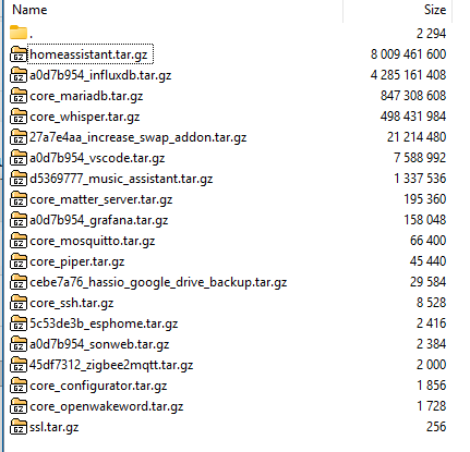 but 8Gb “homeassistant.tar.gz” is still more space than I have on Nabu Casa storage, and I have been unable to open that to find what it contains.