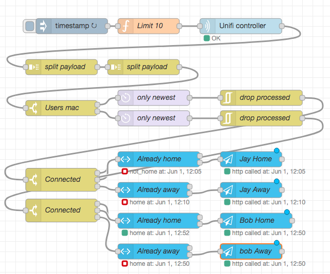 So I made a Node Red flow that makes it a bit easier to track connected devices through Unifi.