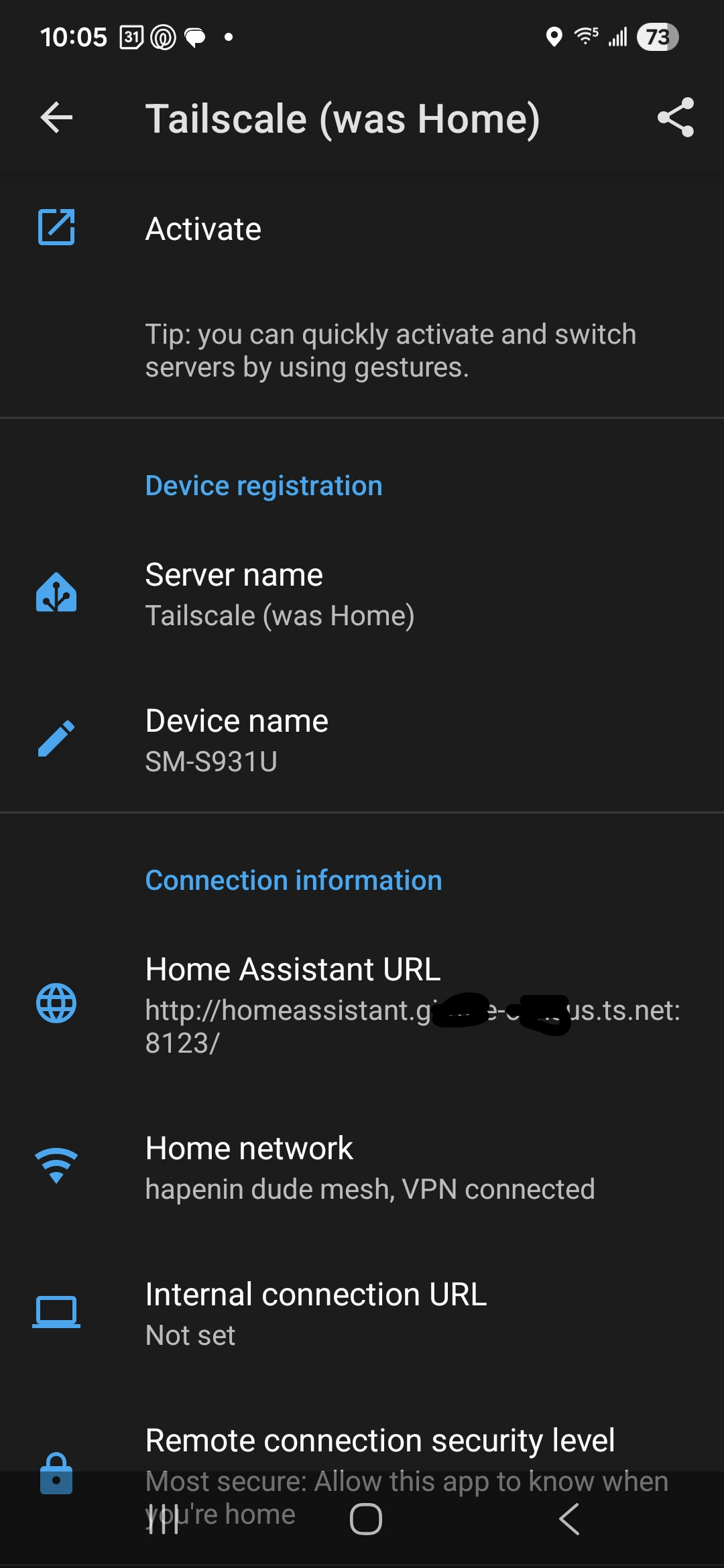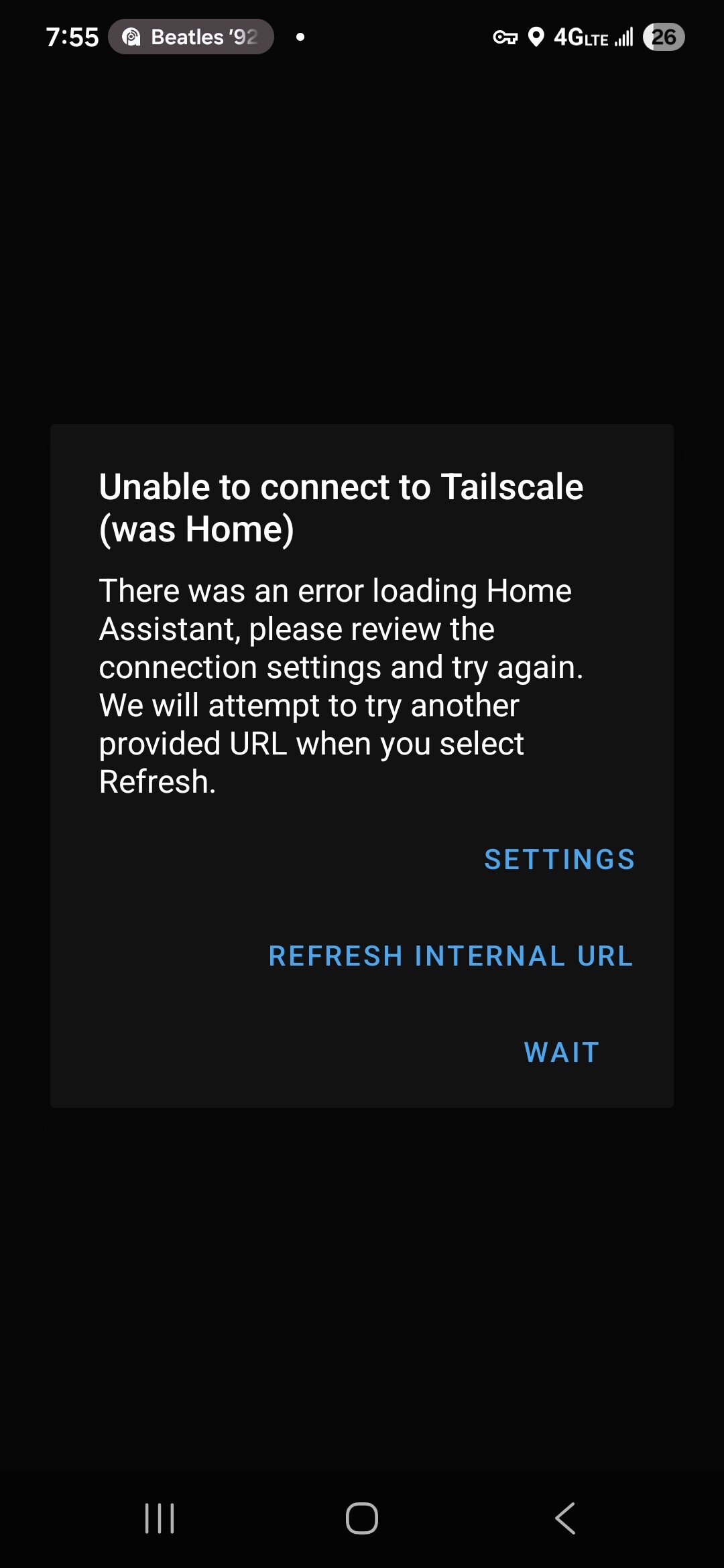 Verify the Internal URL in your mobile browser, when your phone is on home wifi and no Tailscale.