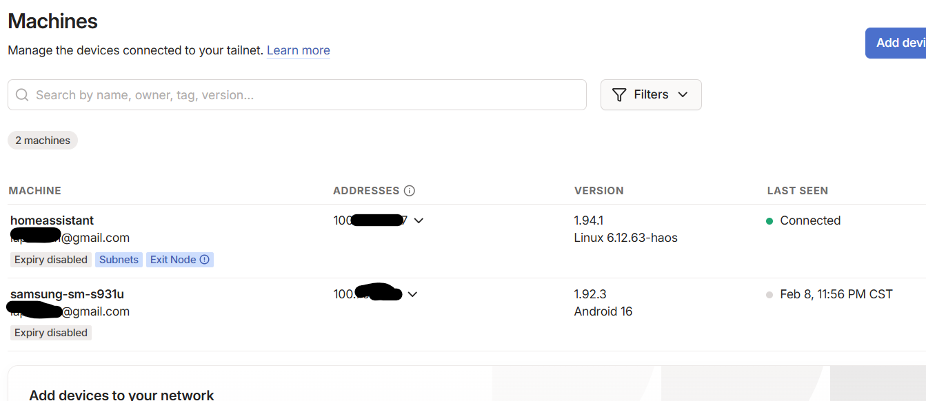 The 100.x address came from your Tailscale admin console for the HA server. Most, if not all, of your Tailscale nodes would have the 100.x address by default. This address would be in your Home Assistant URL