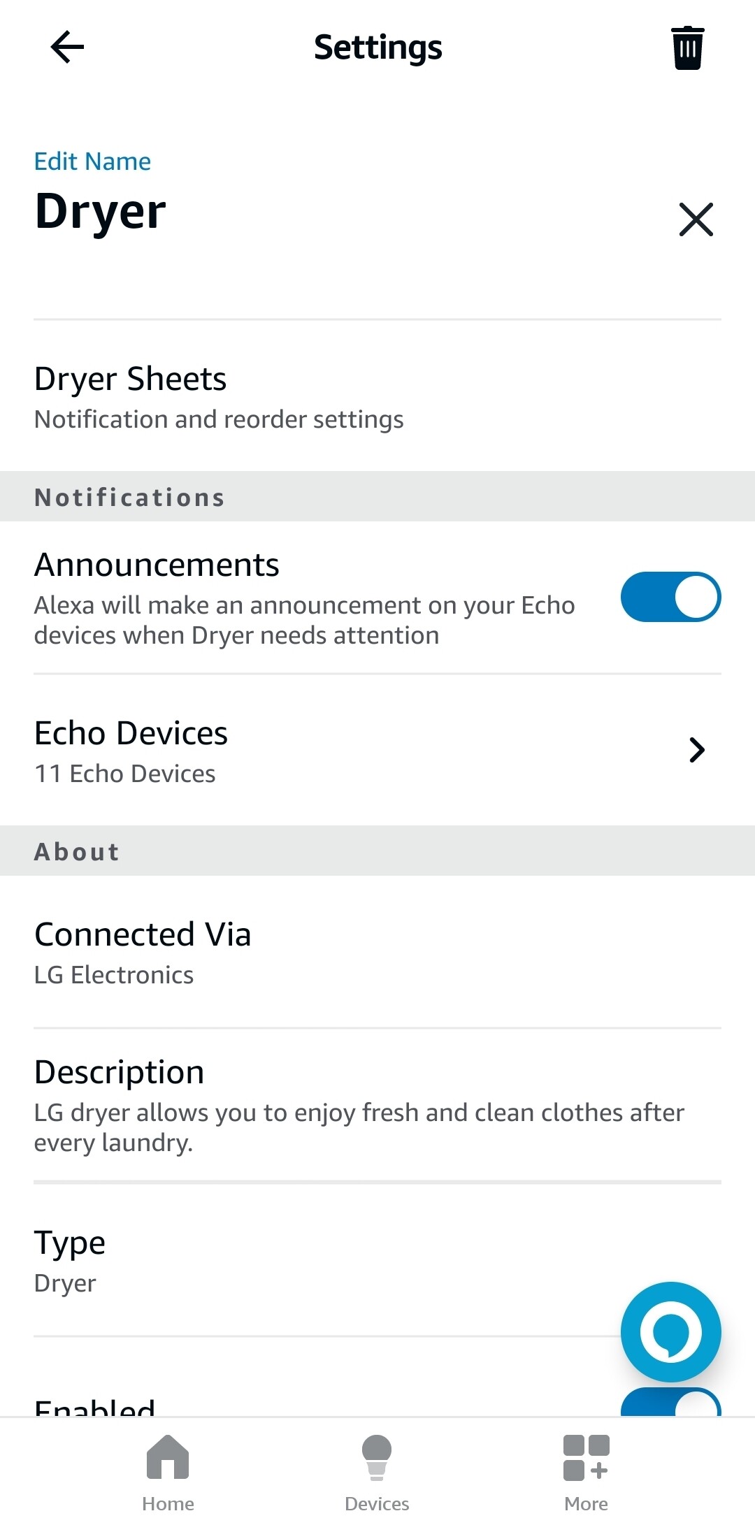 Alexa no longer presents HA exposed scripts as a device, but they are visible in the Alexa group’s creation dialog. The kludgy trigger now is to say “Alexa group name on”. In this case “Alexa Dryer Time on”. Better than nothing until Alexa can access the LG ThinQ time remaining data and/or scripts can be exposed and shared to Alexa scenes. Create the script via settings>automations> scripts and then expose the HA script to Alexa via the settings>voice assistants>alexa. Here is my HA ThinQ dryer time remaining script.