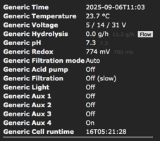 Just a question: I realize that when I switch on/off any aux, the Generic hydrolysis change to 0 and resume to the normal value, I think it is happening with any other command, that’s means that any modbus command we want to change it switches off-on the electrolyser? Could it be dangerous?