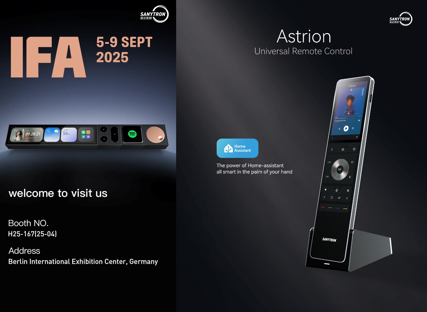 We will be showcasing two new products based on the HA platform at the IFA in Berlin,the smart remote control (Astrion) and the desktop assistant (Ultra Bar). Welcome everyone to come and discuss the new products with us in person.