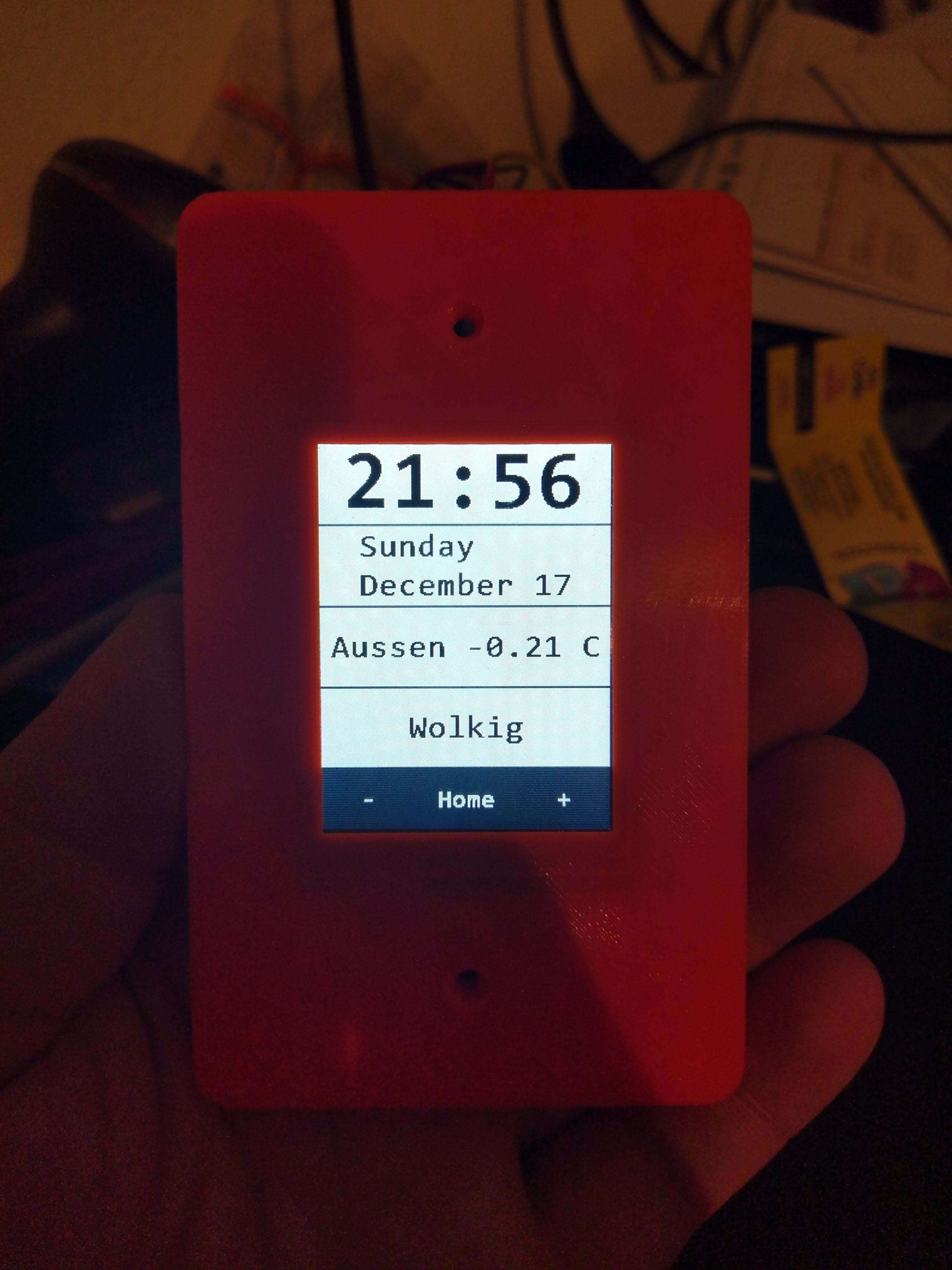 Installed into the wall in a low voltage bracket (Iām using a 5V micro-USB power supply and feed the power under the outlet cover and up the inside of the wall to it). Glad I finally did this and it works great. I had the display, ESP8266, and cover but never put it anywhere. Itās in a nice central location of my house.