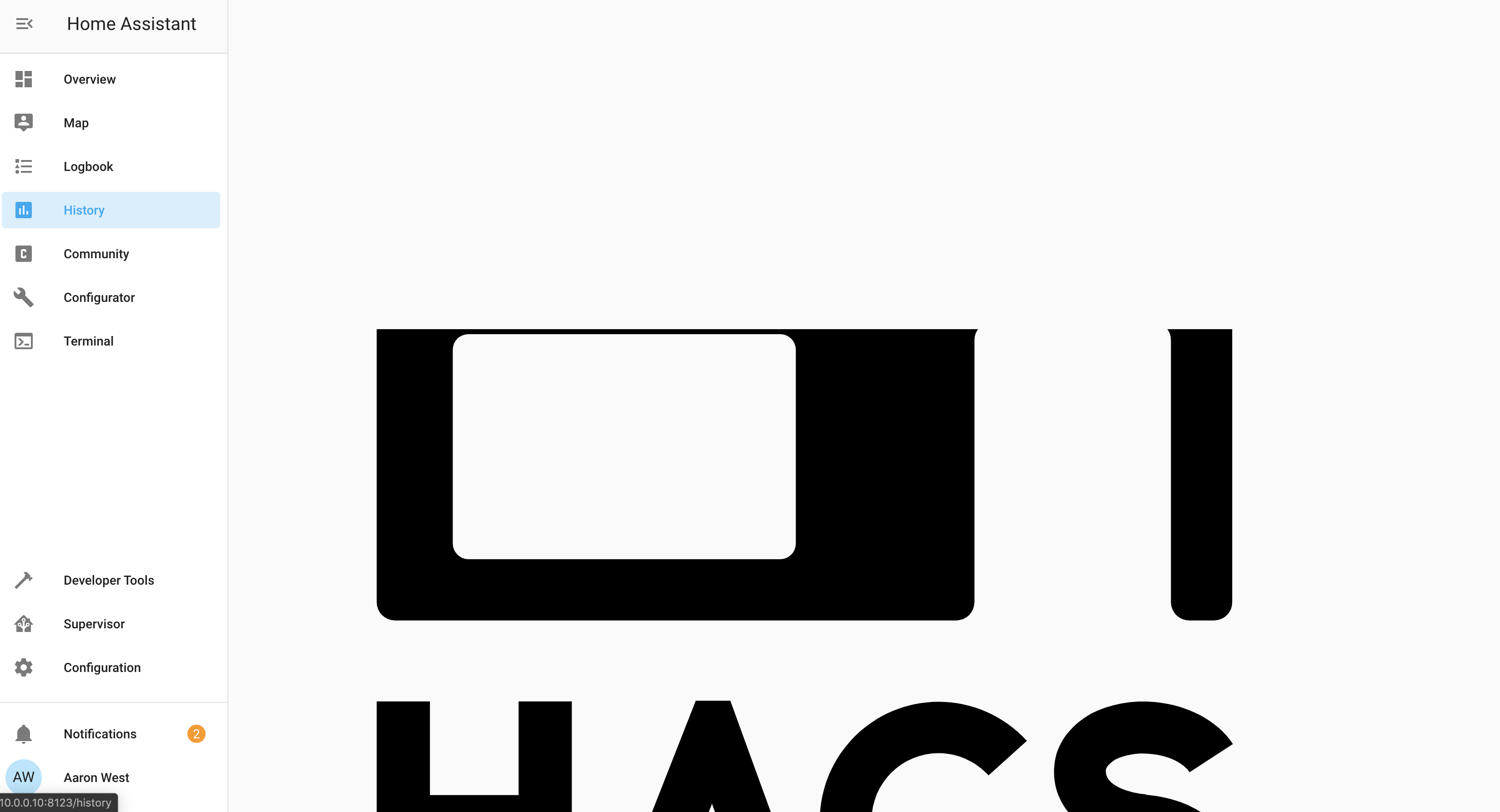 The only page it remains visible is HACS.