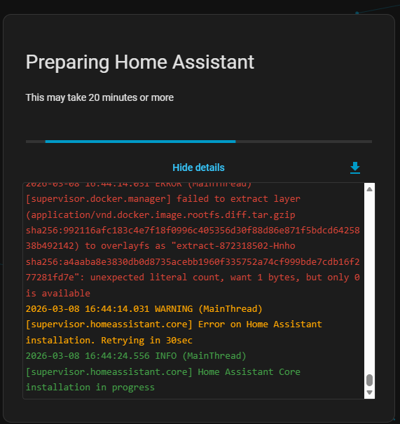 2026-03-07 07:26:28.948 INFO (MainThread) [supervisor.docker.interface] Downloading docker image ghcr.io/home-assistant/qemux86-64-homeassistant with tag 2026.3.1.