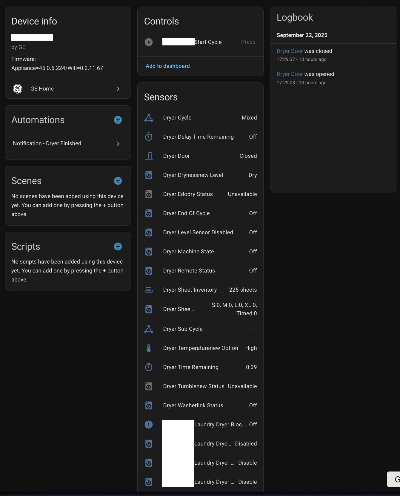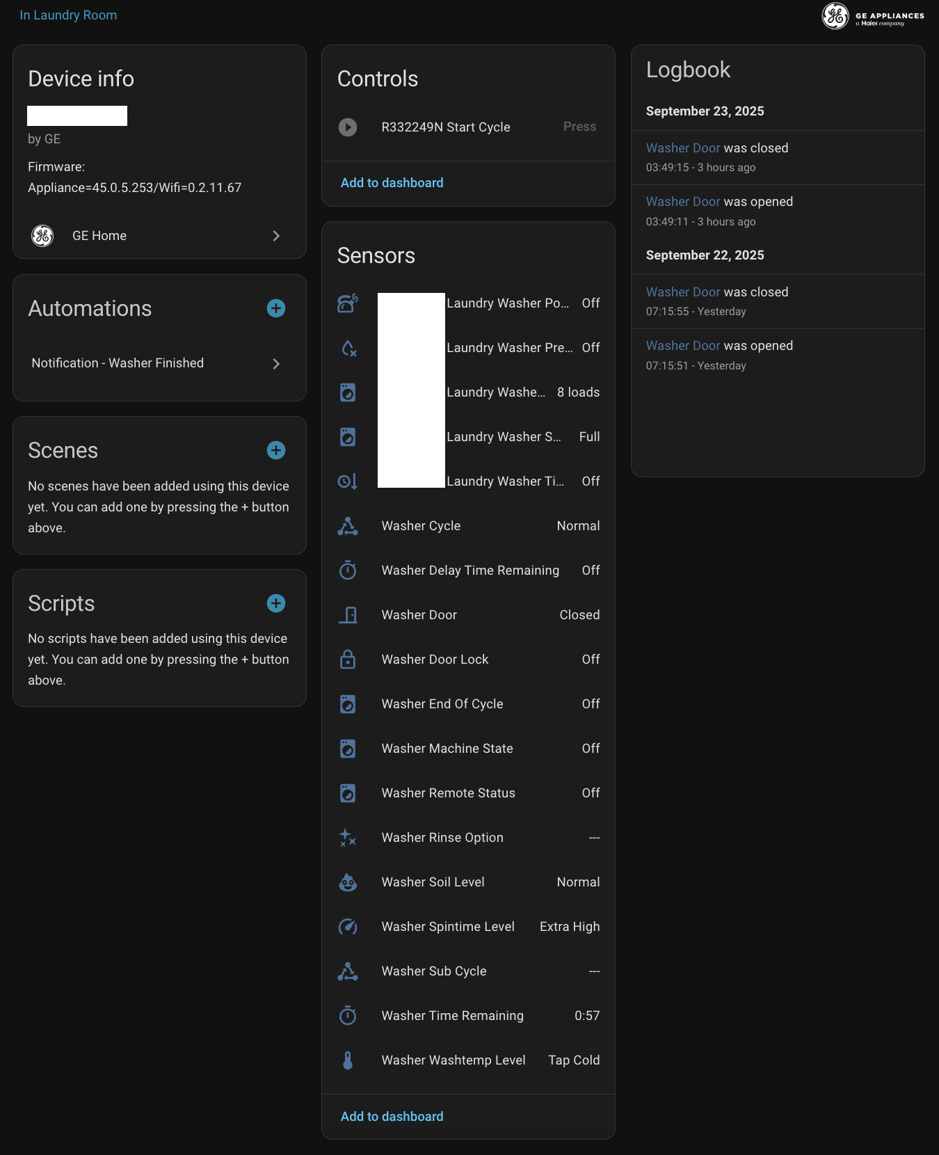 I’m looking into using the ha_gehome integration (for GE SmartHQ / GE Home) with my Fisher and Paykel washer/dryer combo (in the Laundry category). Before I commit to installing/configuring it, I wanted to see if others have got this working and what you can actually do once it’s set up.