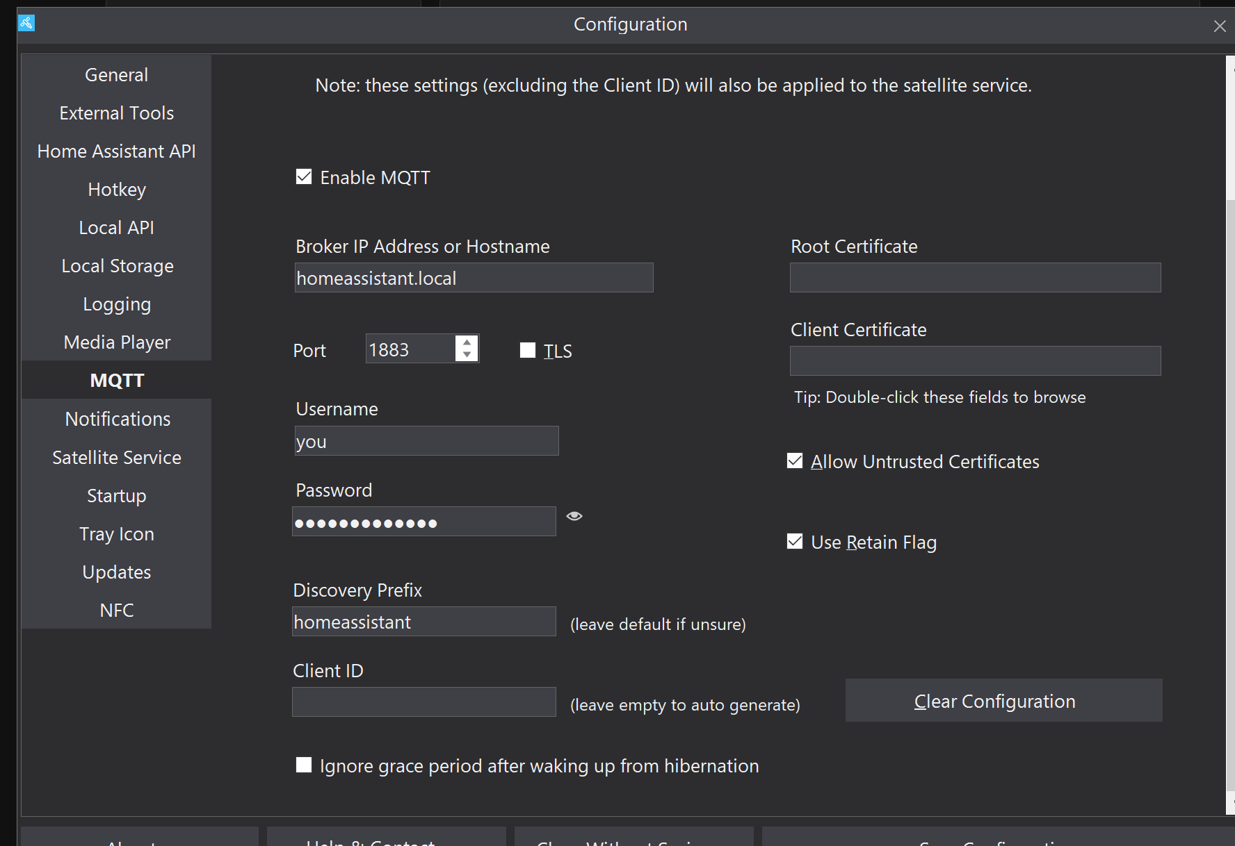 Exception in updated when handling msg on 'hass.agent/devices/Laptop_Christian': '{"serial_number":"6c36a083-412d-4256-8be5-e26412abfe89","device":{"identifiers":"hass.agent-Laptop_Christian","manufacturer":"LAB02 Research","model":"Microsoft Windows NT 10.0.26100.0","name":"Laptop_Christian","sw_version":"2022.14.0"},"apis":{"notifications":true,"media_player":true}}' Traceback (most recent call last): File "/usr/src/homeassistant/homeassistant/helpers/frame.py", line 239, in _report_usage integration_frame = get_integration_frame( exclude_integrations=exclude_integrations ) File "/usr/src/homeassistant/homeassistant/helpers/frame.py", line 130, in get_integration_frame raise MissingIntegrationFrame homeassistant.helpers.frame.MissingIntegrationFrame The above exception was the direct cause of the following exception: Traceback (most recent call last): File "/config/custom_components/hass_agent/__init__.py", line 144, in updated update_device_info(hass, entry, payload) ~~~~~~~~~~~~~~~~~~^^^^^^^^^^^^^^^^^^^^^^ File "/config/custom_components/hass_agent/__init__.py", line 29, in update_device_info device_registry.async_get_or_create( ~~~~~~~~~~~~~~~~~~~~~~~~~~~~~~~~~~~^ config_entry_id=entry.entry_id, ^^^^^^^^^^^^^^^^^^^^^^^^^^^^^^^ ...<4 lines>... sw_version=new_device_info["device"]["sw_version"], ^^^^^^^^^^^^^^^^^^^^^^^^^^^^^^^^^^^^^^^^^^^^^^^^^^^ ) ^ File "/usr/src/homeassistant/homeassistant/helpers/device_registry.py", line 885, in async_get_or_create device = self.async_update_device( device.id, ...<17 lines>... via_device_id=via_device_id, ) File "/usr/src/homeassistant/homeassistant/helpers/device_registry.py", line 1168, in async_update_device self.hass.verify_event_loop_thread("device_registry.async_update_device") ~~~~~~~~~~~~~~~~~~~~~~~~~~~~~~~~~~^^^^^^^^^^^^^^^^^^^^^^^^^^^^^^^^^^^^^^^ File "/usr/src/homeassistant/homeassistant/core.py", line 465, in verify_event_loop_thread frame.report_non_thread_safe_operation(what) ~~~~~~~~~~~~~~~~~~~~~~~~~~~~~~~~~~~~~~^^^^^^ File "/usr/src/homeassistant/homeassistant/helpers/frame.py", line 402, in report_non_thread_safe_operation report_usage( ~~~~~~~~~~~~^ f"calls {what} from a thread other than the event loop, " ^^^^^^^^^^^^^^^^^^^^^^^^^^^^^^^^^^^^^^^^^^^^^^^^^^^^^^^^^ ...<6 lines>... custom_integration_behavior=ReportBehavior.ERROR, ^^^^^^^^^^^^^^^^^^^^^^^^^^^^^^^^^^^^^^^^^^^^^^^^^ ) ^ File "/usr/src/homeassistant/homeassistant/helpers/frame.py", line 202, in report_usage future.result() ~~~~~~~~~~~~~^^ File "/usr/local/lib/python3.13/concurrent/futures/_base.py", line 456, in result return self.__get_result() ~~~~~~~~~~~~~~~~~^^ File "/usr/local/lib/python3.13/concurrent/futures/_base.py", line 401, in __get_result raise self._exception File "/usr/src/homeassistant/homeassistant/util/async_.py", line 68, in run_callback future.set_result(callback(*args)) ~~~~~~~~^^^^^^^ File "/usr/src/homeassistant/homeassistant/helpers/frame.py", line 243, in _report_usage _report_usage_no_integration(what, core_behavior, breaks_in_ha_version, err) ~~~~~~~~~~~~~~~~~~~~~~~~~~~~^^^^^^^^^^^^^^^^^^^^^^^^^^^^^^^^^^^^^^^^^^^^^^^^ File "/usr/src/homeassistant/homeassistant/helpers/frame.py", line 373, in _report_usage_no_integration raise RuntimeError(msg) from err RuntimeError: Detected code that calls device_registry.async_update_device from a thread other than the event loop, which may cause Home Assistant to crash or data to corrupt. For more information, see https://developers.home-assistant.io/docs/asyncio_thread_safety/#device_registryasync_update_device. Please report this issue
