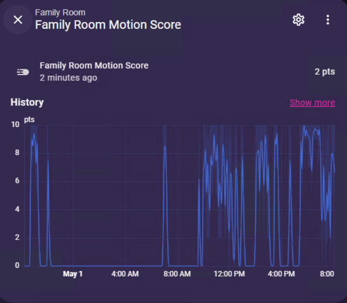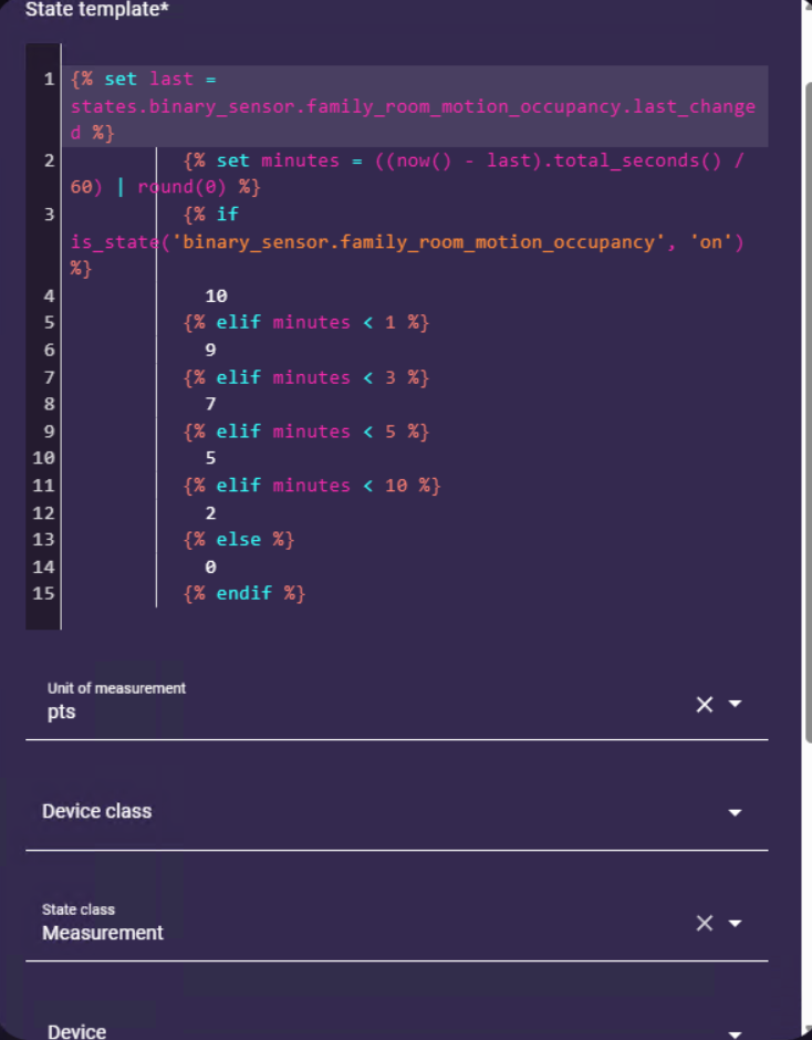 Hi @andsten, I really like your heat map card and have used it with a number of things in my home with a lot of success, but I am having issues with one thing I’m trying to set up. I have a template that I’m using to generate a motion score for the occupancy sensors in my home. The problem I’m running into is there isn’t really a device class I can map these to and the card doesn’t seem to want to work for me with them.
