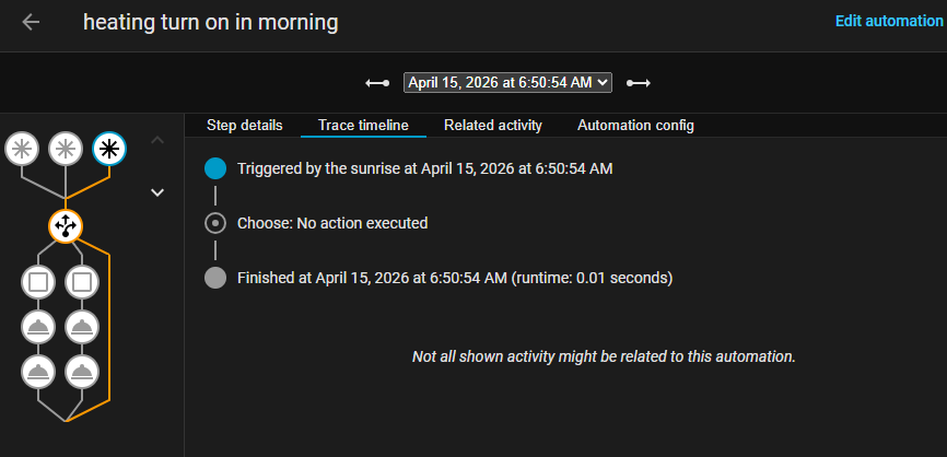 What is the purpose of the sunrise trigger? The automation doesn’t include any conditions to stop it from working overnight, so why trigger it at sunrise?