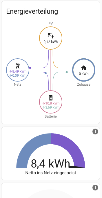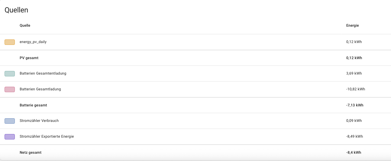 I am at the very beginning of the integration of the Energy dashboard and Huawei Solar and I have similar results as Pietro had in his early stages. What I did is to define the template sensors “energy_pv_daily” and “energy_pv”. The first sensor I’m using as input for PV-Production in the Energy Dashboard. For battery I use sensor.batterien_gesamtladung resp sensor.batterien_gesamtentladung. And for from/to grid the sensors are sensor.stromzahler_verbrauch (consumption) resp sensor.stromzahler_exportierte_energie. Unfortunately my Dashboard looks rather awful and makes no sense to me. Although I have to admit, pv_energ_daily corresponds to FusionSolar-Value as indicated by Pietro. Nevertheless, I am 100% sure my power consumption is higher than zero. Can you please tell me what I’m doing wrong?