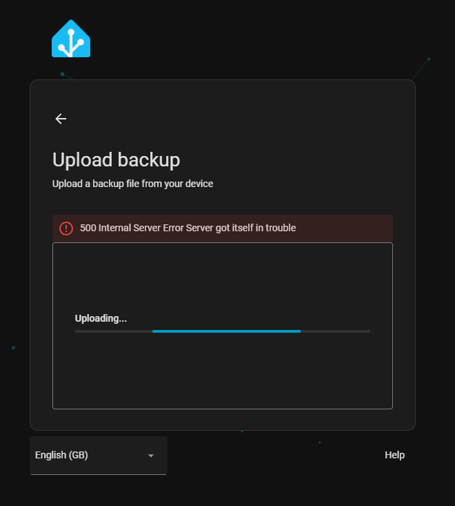 I’ve had to reinstall HAOS and trying to restore a local backup gives me a 500 Server error and I can’t get any further. Any suggestions please?