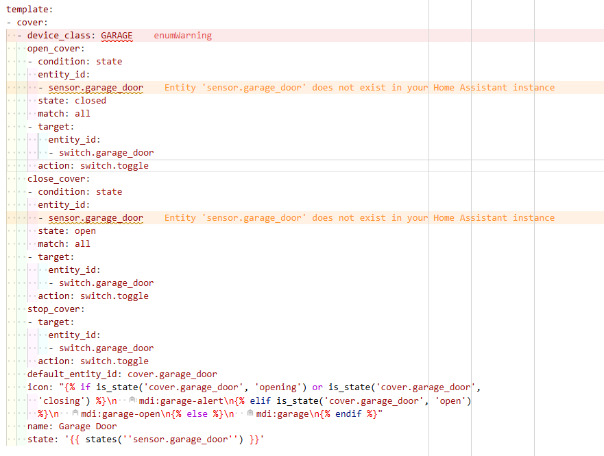 It suggested I change my garage door cover template in the configuration.yaml with a pre suggested option and now my garage door state shows as unknown and will not operate via the Shelly switch I use. I’ve tried playing around with it for an hour or so with no luck. Just wondering if anyone could help me out please? Also, sorry if I am posting in the wrong section of the forum, I just signed up to the forums to ask for help, it tells me there is 4 errors with the template