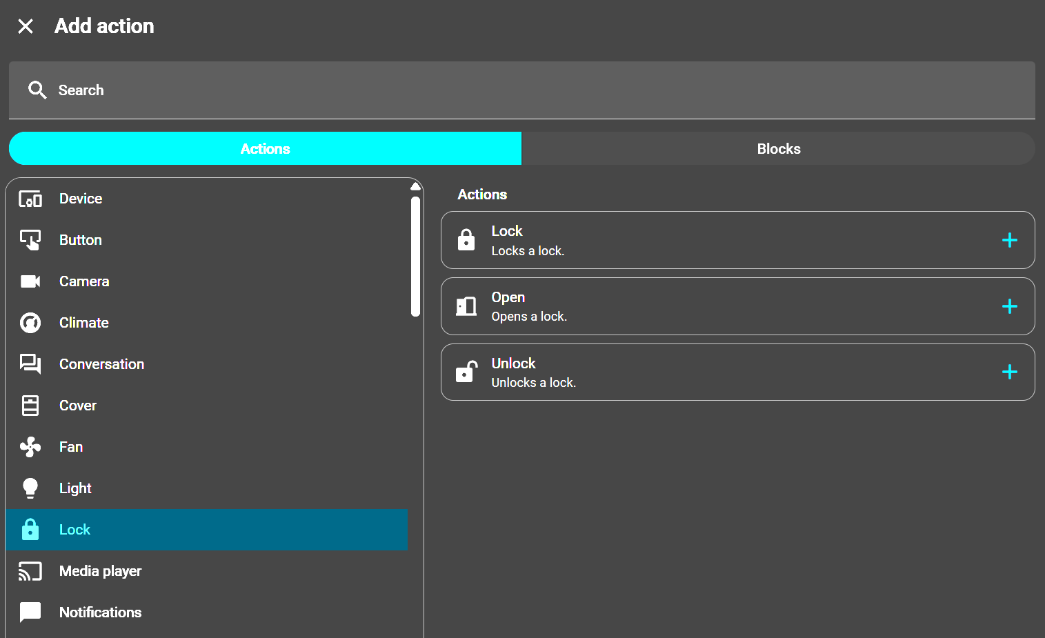 It looks like I can specify an action of “Lock” instead of using the Device (I can’t post a 2nd picture due to me being new here) and assume this will work, but would like to know why the device action above has no actions listed. I don’t have any problems controlling the lock with Home Assistant either.