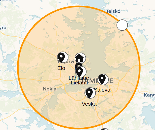 I have one big zone called “near area”, which is about 20 km radius from my home. There is also some smaller zones inside that area, like shopping centers.