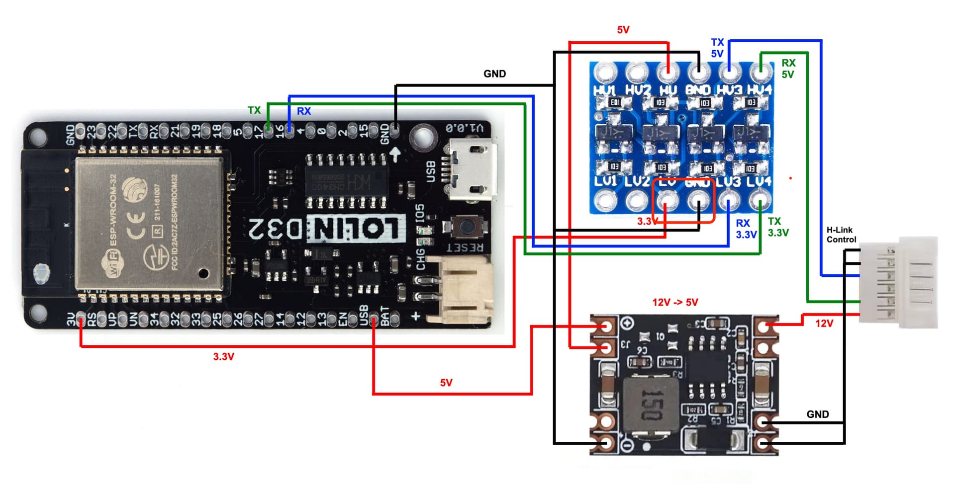 Also, from this picture, it looks like you are missing 3.3V and GND connections that should go from the ESP board to the LV and GND lines on the TTL converter.