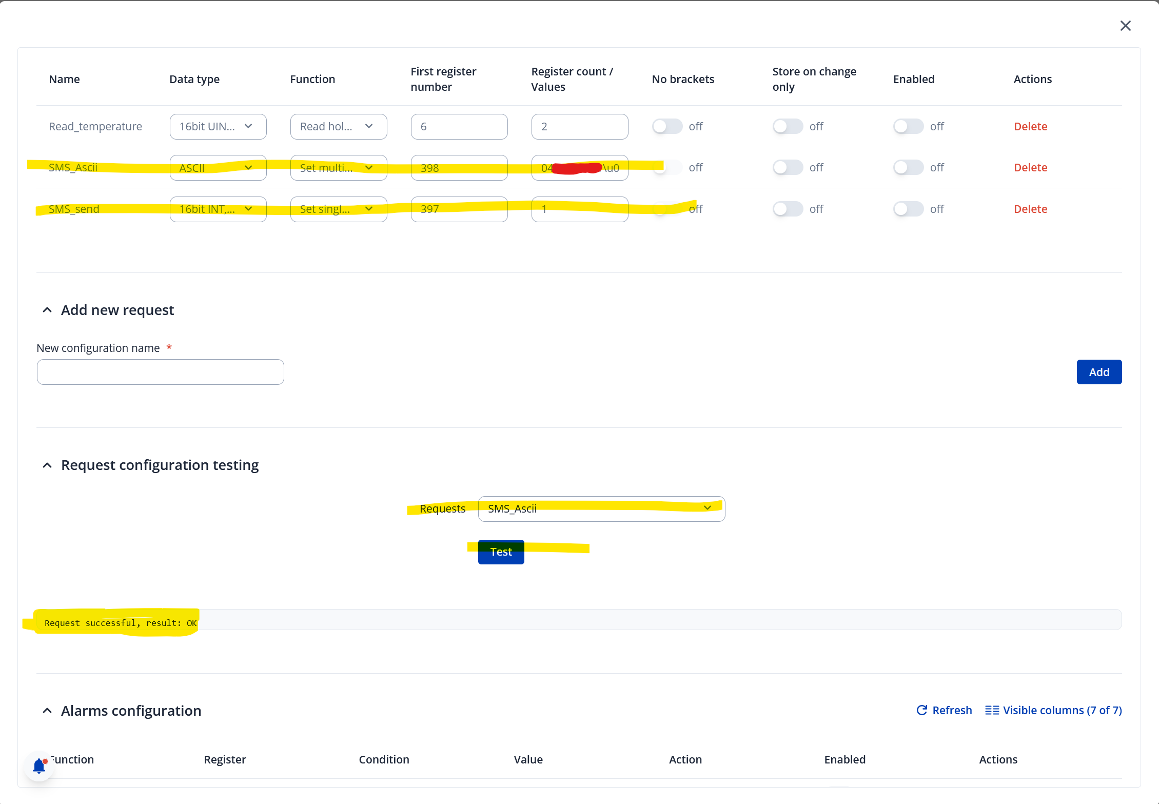 Sending SMS via Modbus.