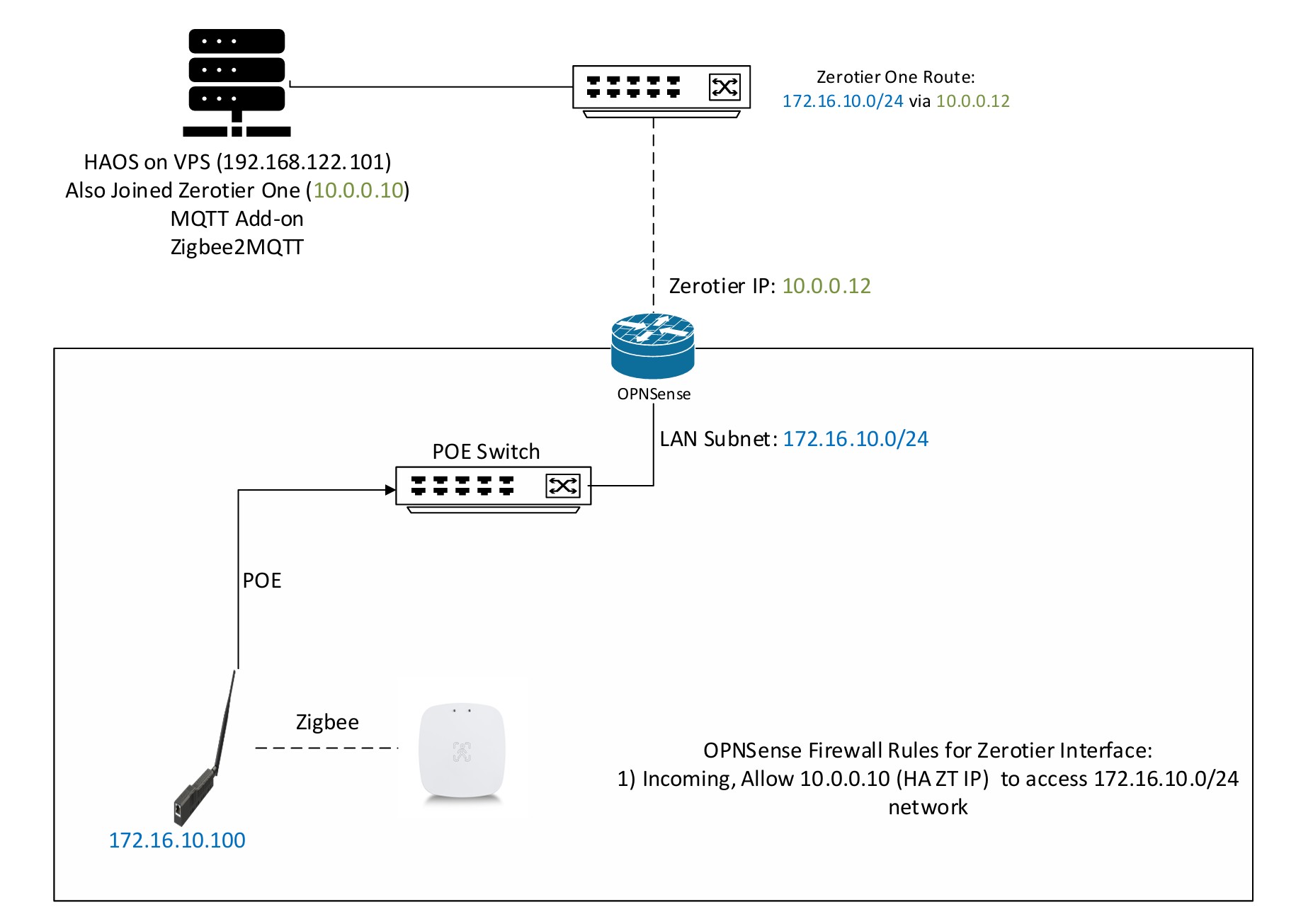Before the actual deployment, I would like to seek for some network guru to help me check whether this kind of network infrastructure can make the POE zigbee stick and HA-on-Cloud to talk to each other.