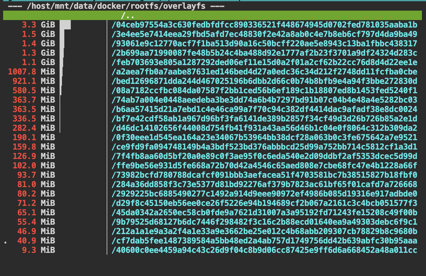 Maybe df ( docker system df “You need Advance Terminal APP , for this” )