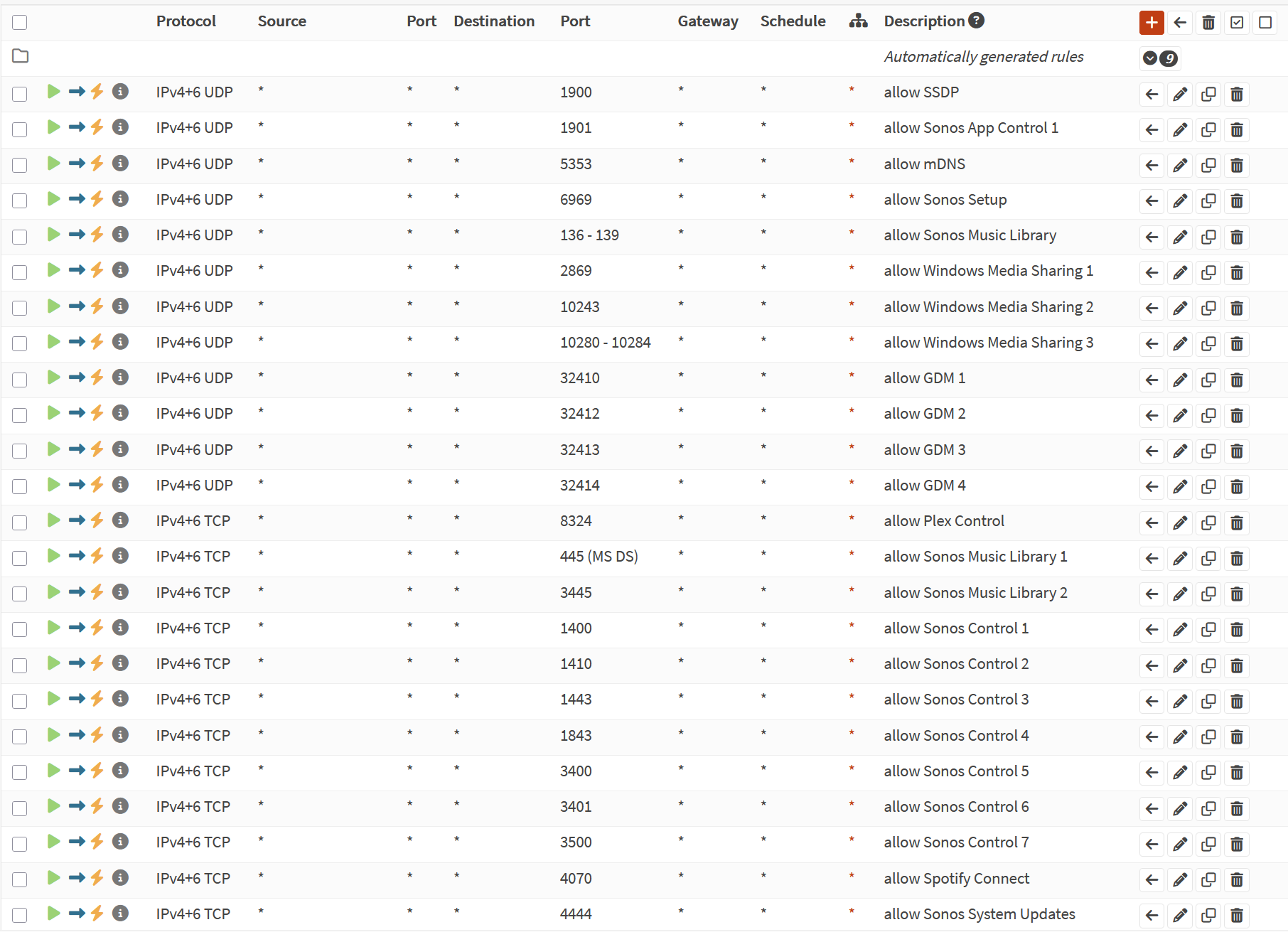 I’ve got a bunch of Floating Firewall Rules for various multicast ports:
