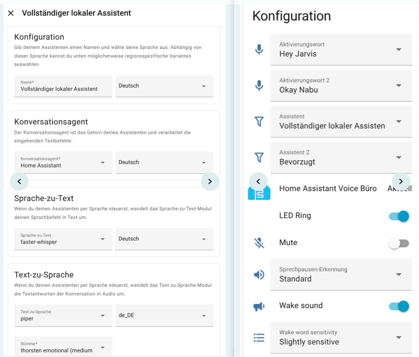 The Voice PEs are also integrated and I can wake them successfully with “Hey Jarvis”. But anything I ask Jarvis afterwards is not being recognised. No matter if I ask for the time ("Sorry, I dont understand) or simply ask for switching on the lights (“the area is not defined” - it is and the lights are also defined in this area).