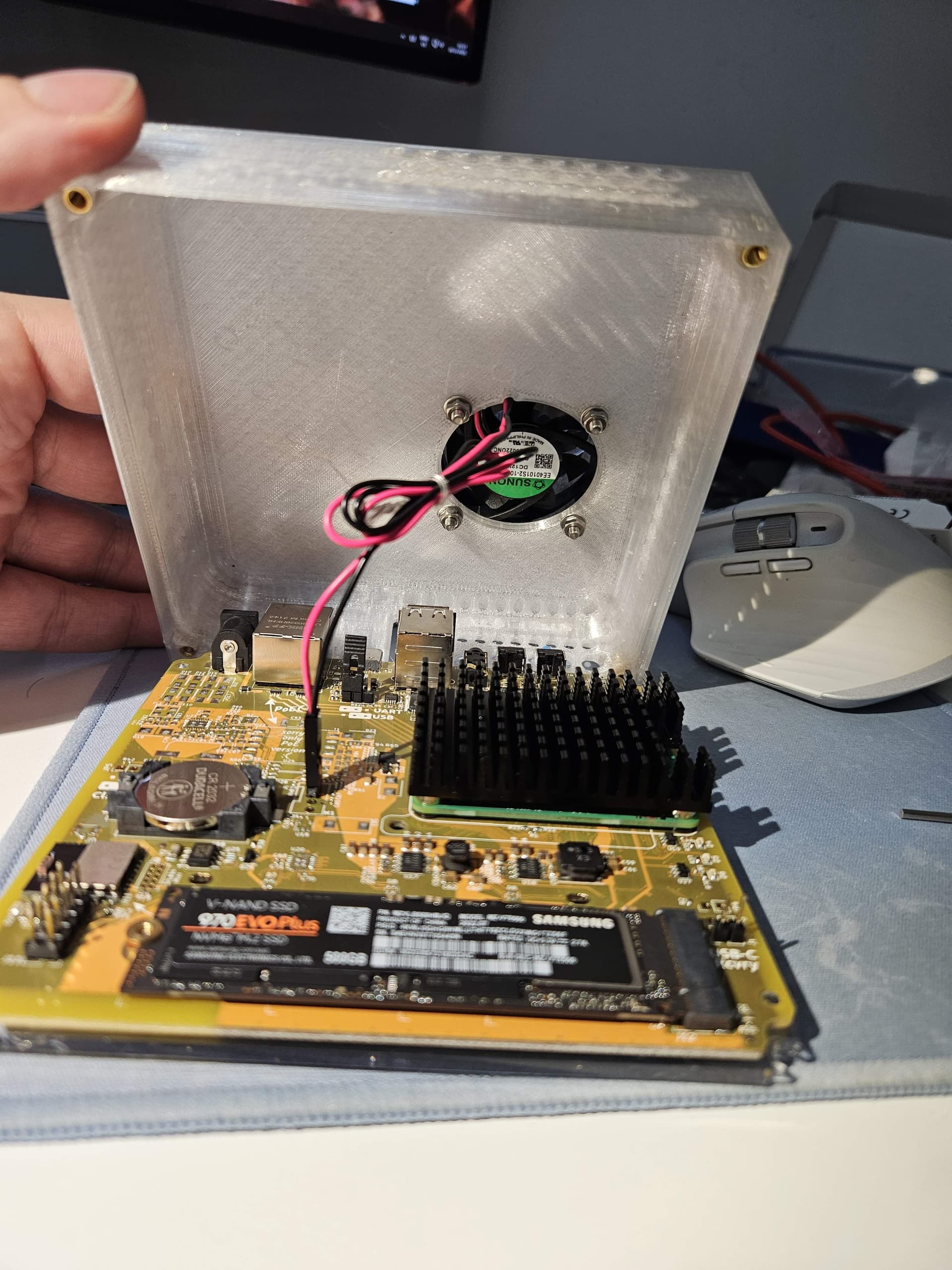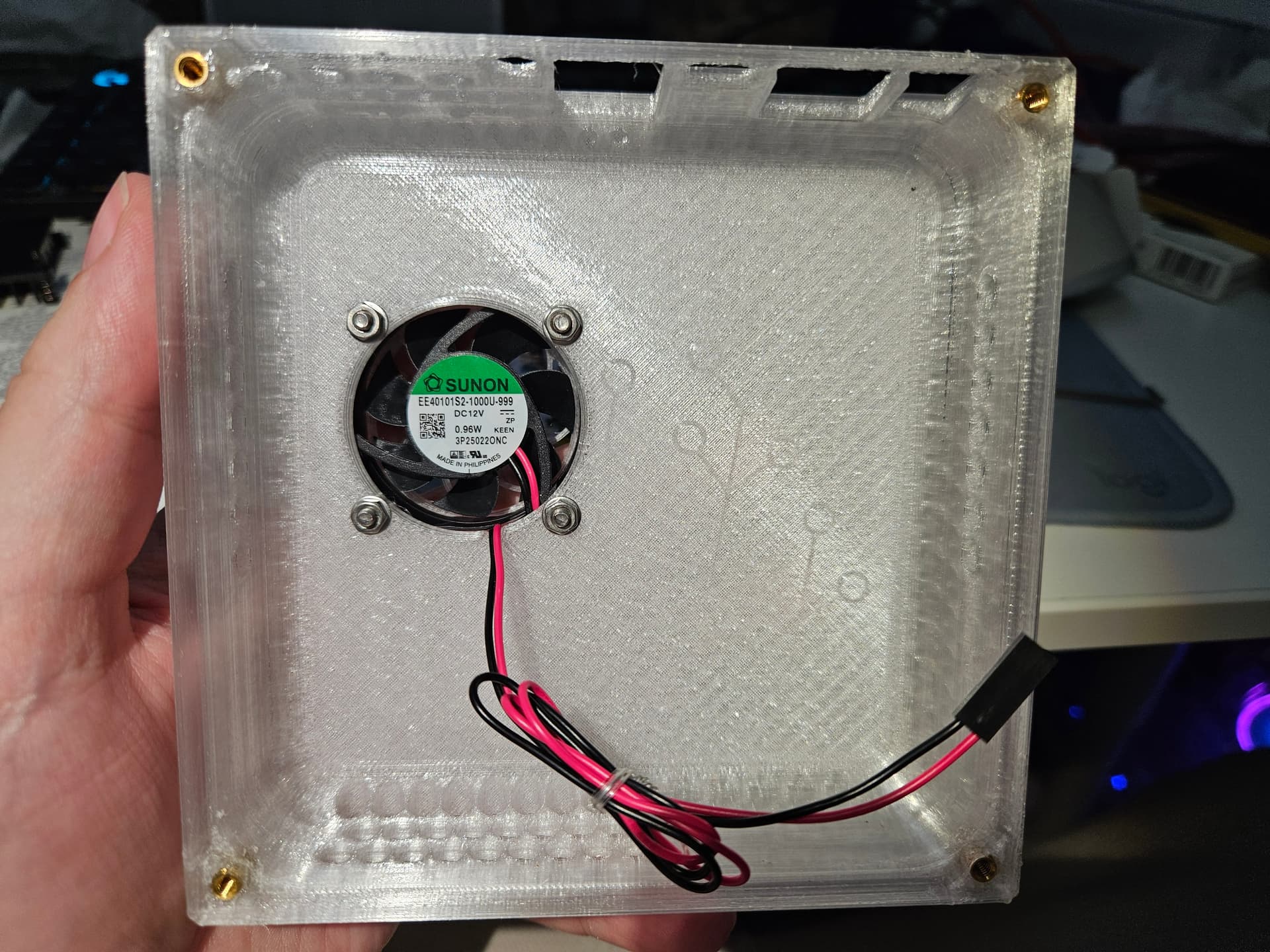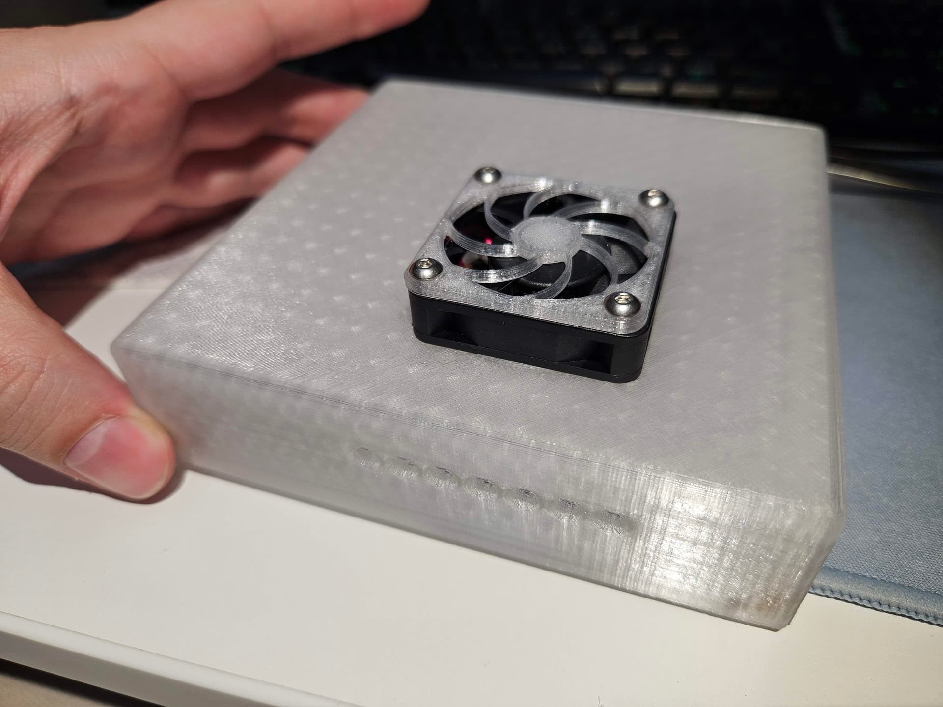 - imported and adapted the case from Home Assistant Yellow Enclosure by Home Assistant | Download free STL model | Printables.com (which was already adapted a little bit for easier printing) to support a cooler and to have air-holes for air-out