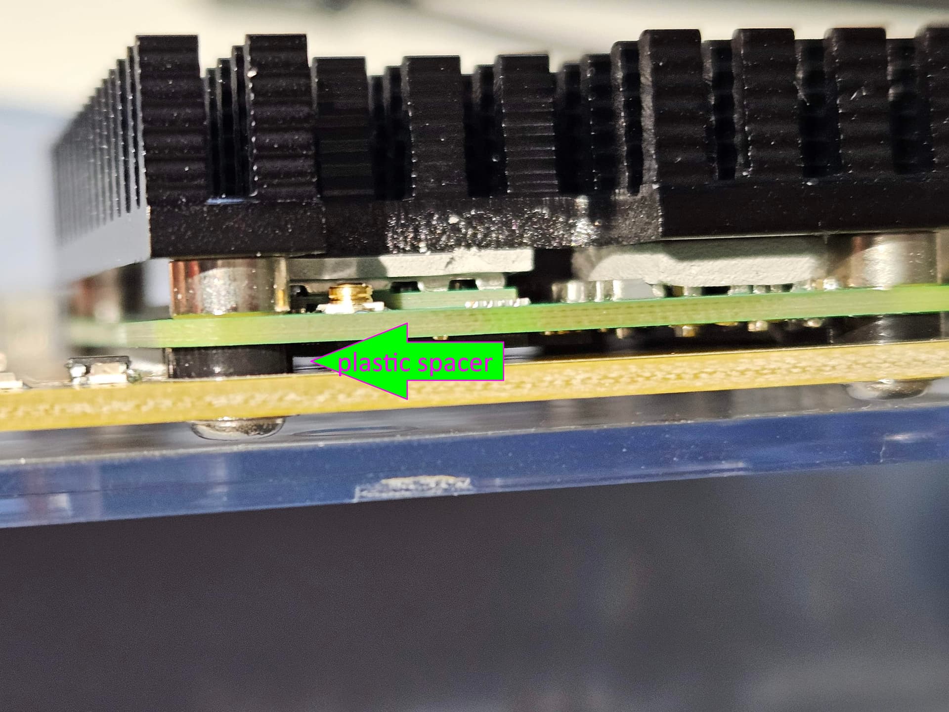 - I used the rPi radiator “COMPUTE MODULE 5 PASSIVE COOLER RASPBERRY PI”, which came with thermal pads already applied, and I used the screws + plastic spacers included in that box