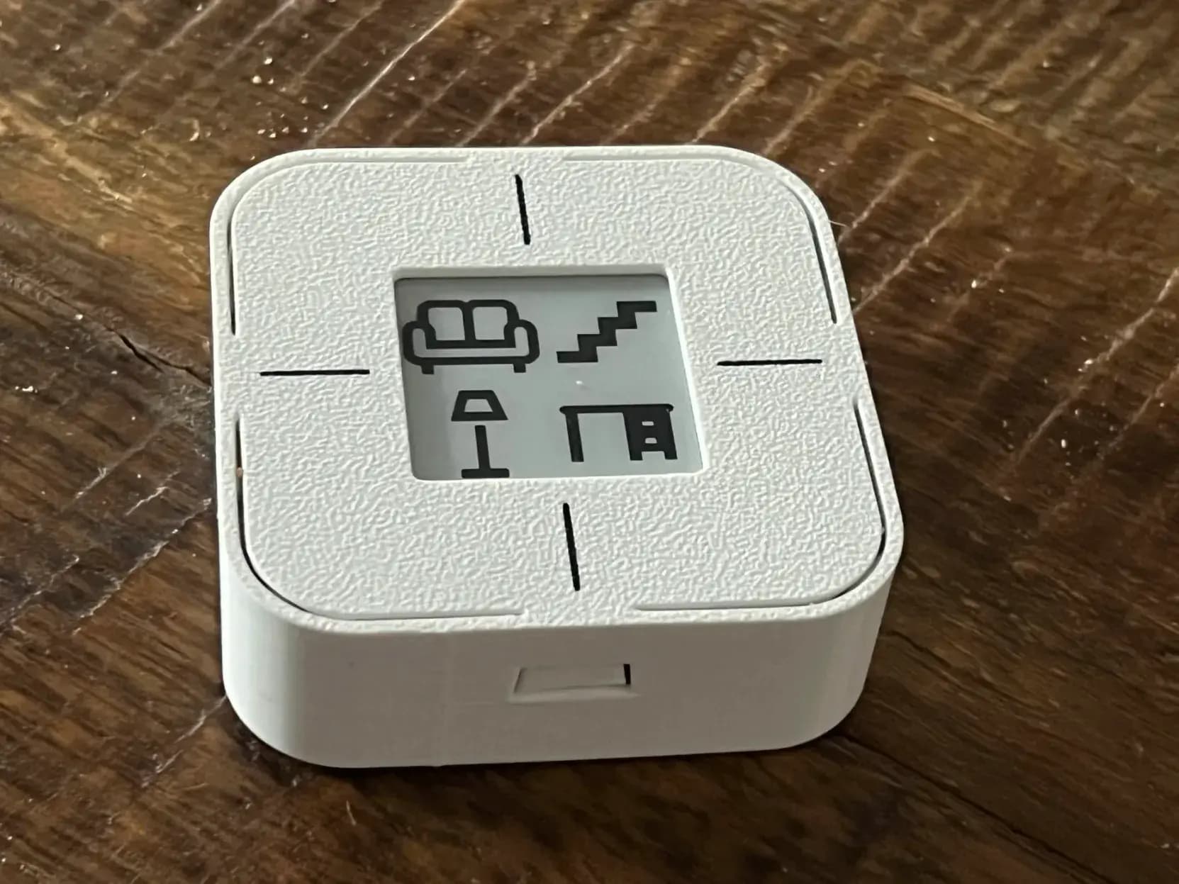 There are two special button functions: Press any button for five seconds and you get temperature, humidity and battery level displayed. Press any two buttons for five seconds, and you get buttons to reconfigure wifi, enable the setup web server, restart, or reset the device.