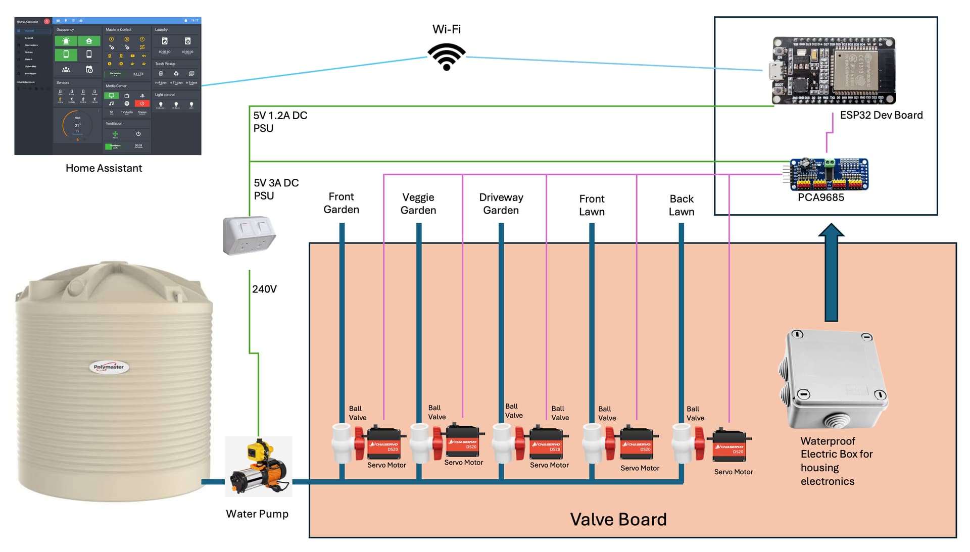 I have been running Home Assistant for more than 6 years. I have always wanted to automate my watering systems, but I have always put off because I needed to fix my rainwater tanks. This year I decided I am finally going to do it. After research I found a few videos that I inspired me and gave me ideas that I put together. See the bottom of the article. Here is a video of working.