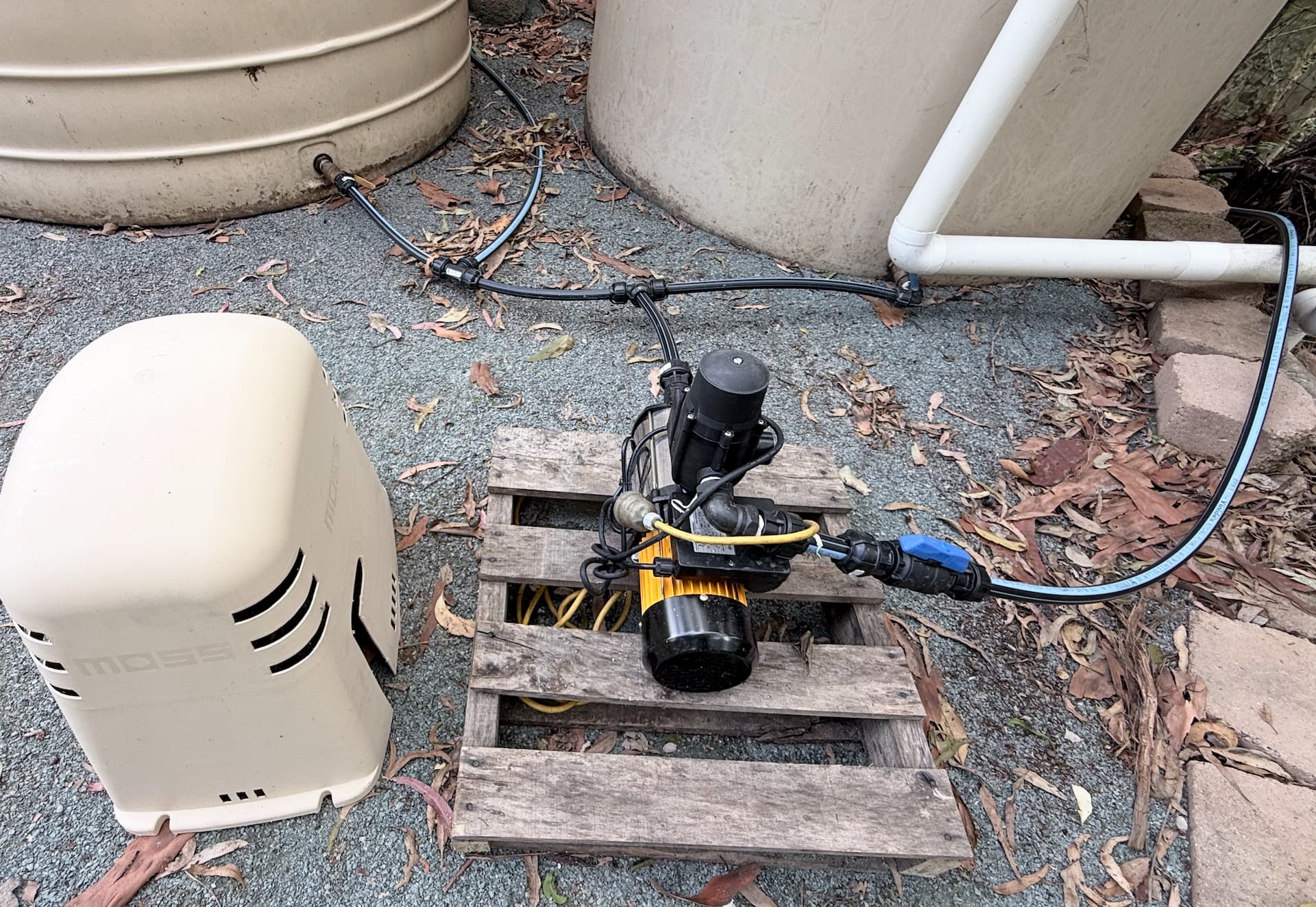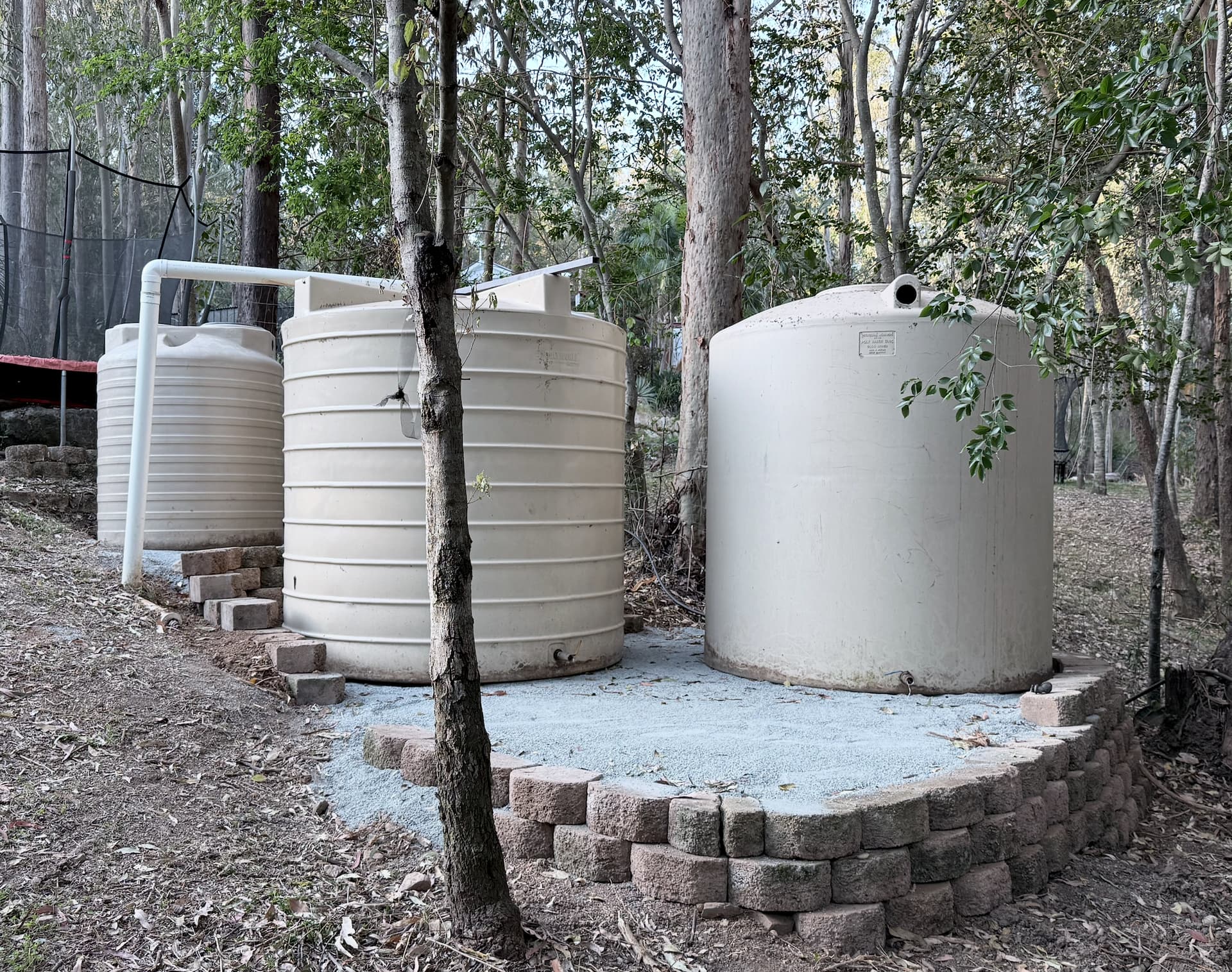 I had 3 rainwater tanks (a total of 13,000L) in my property that were not being used for years and there were not connected to a water pump. I had to do major work to re-install the tanks first as they have slid down the hill in my back yard over the years. I built a platform for them using recycled retaining wall bricks and crusher dust. This took me weeks to do by hand ![]()