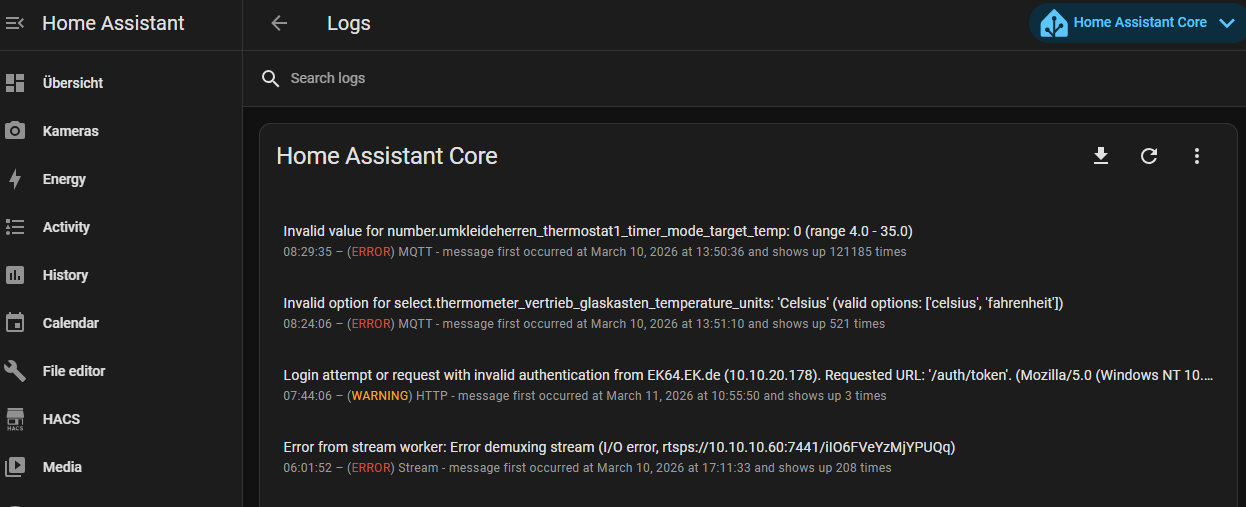 when in a browser (doesn’t matter which) the Logs don’t load.
