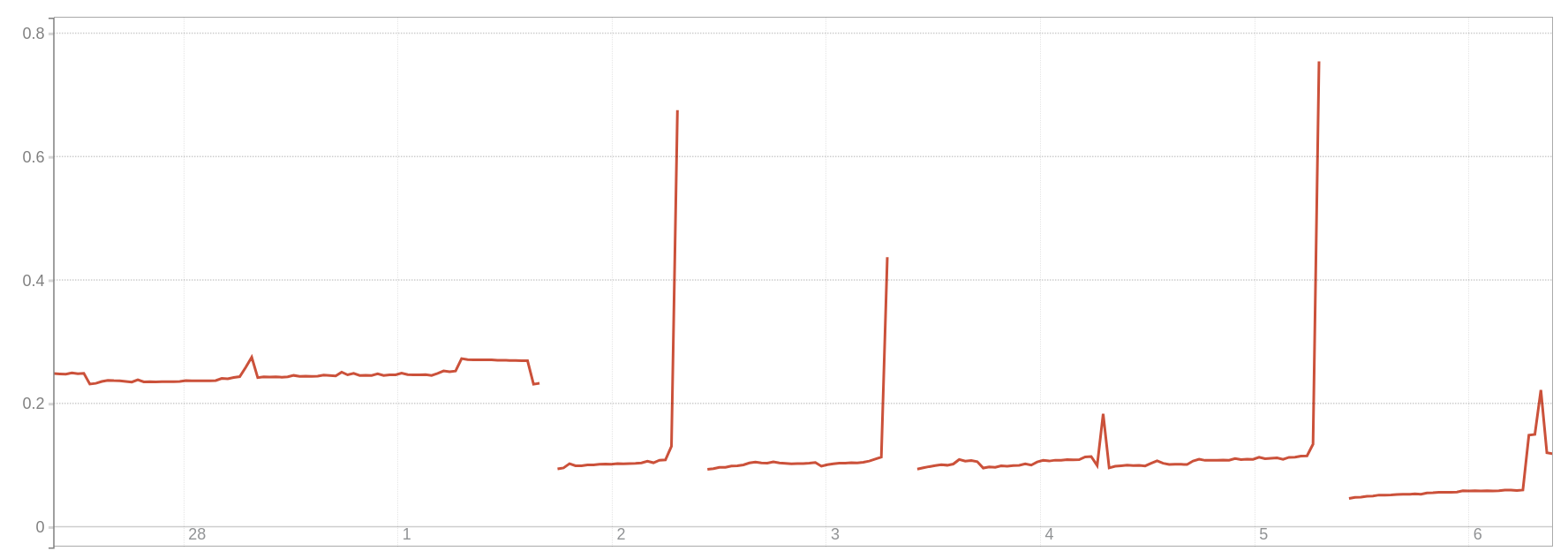 So still a spike, just not one that took out the host (you can see gaps previously when the host was so overwhelmed where the gaps are).