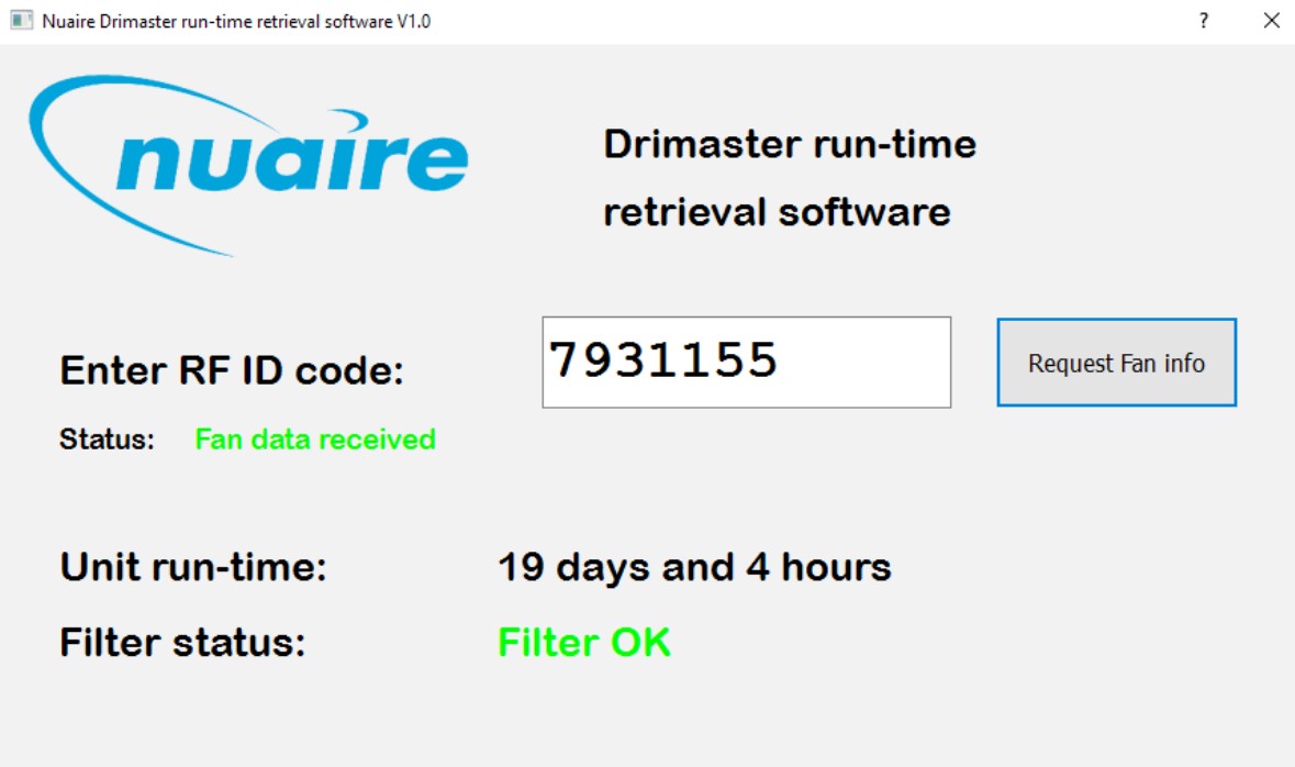 I note the Nuaire Drimaster Remote Monitoring Device (DRI-ECO-RM) provides filter status and run-time hours. I donāt have this device myself, the picture is taken from their datasheet.