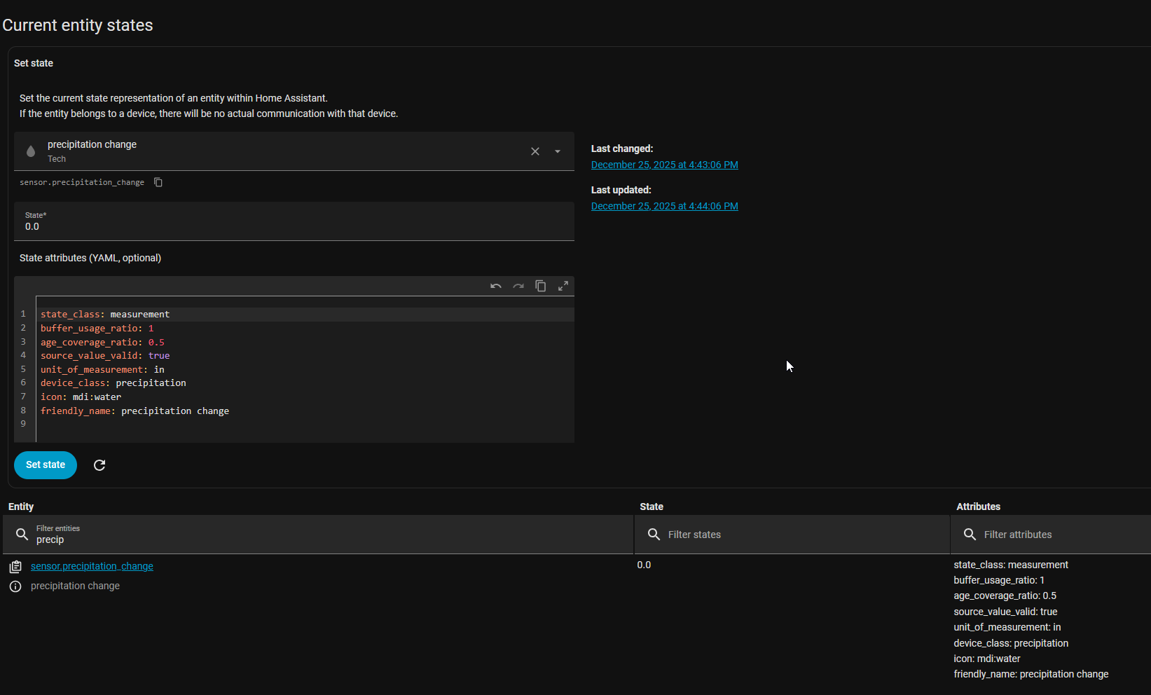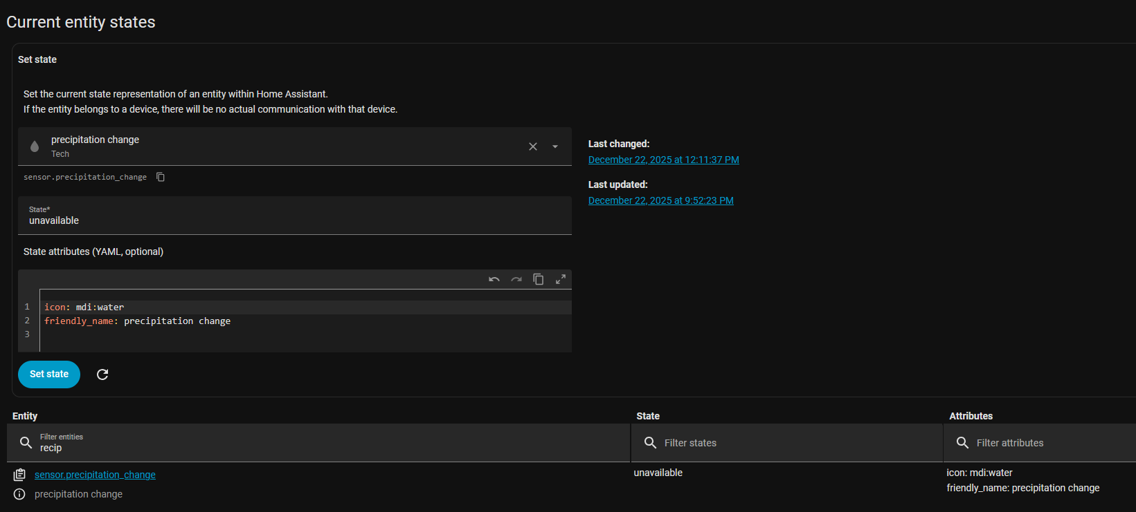 Recently I broke it by trying to figure out a way to filter out the resets to 0 which caused big negative swings in the change sensor. I couldn’t figure it out myself, I used a LLM to help, still couldn’t get it to work so I reverted to my original config, but the change sensor never started working again.