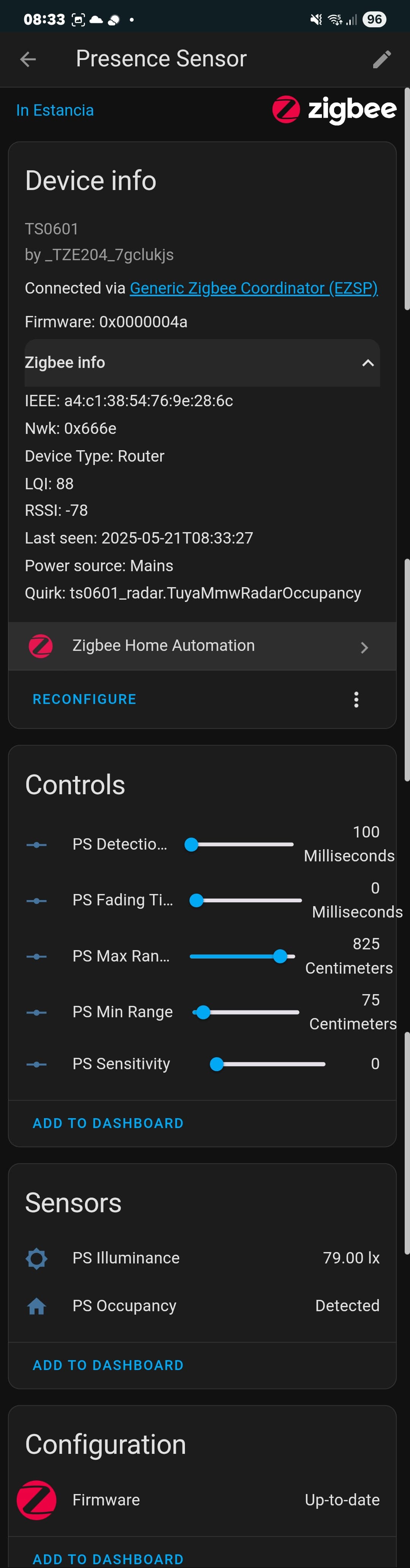 ZigBee 24G MmWave Radar Human Body Presence Motion Sens…or - not showing entities.