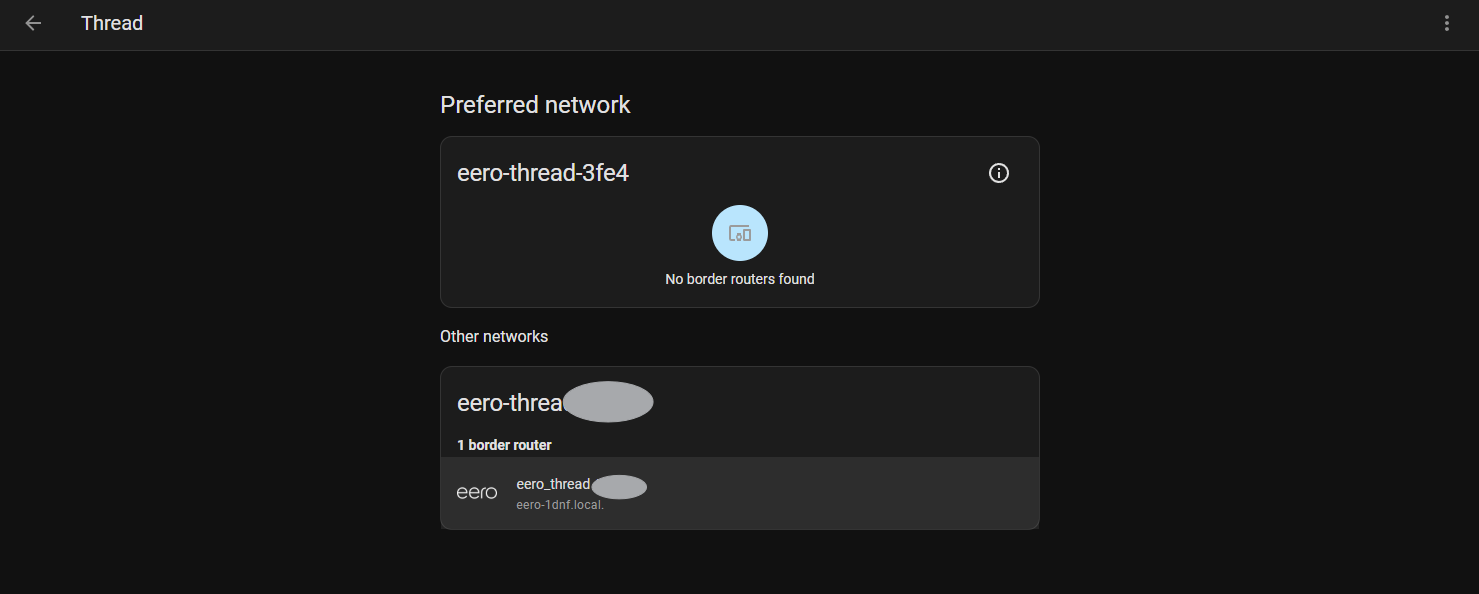 I am having a similar issue with my Eero thread network. Does anyone know how to resolve this? I followed the steps above on the mobile device but it still won’t let me default it. Any ideas? I am trying to add an ikea matter device.
