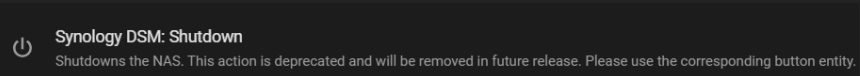 I wanted to expand my Power Outage automation to include the shutdown of my Synology NAS. I have the Synology integration installed. I found this which made it look easy, but then I read the fine print: