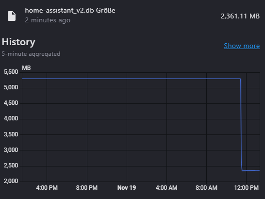 i currently have a issue with my db size and i´m not sure from what this comming from. My HA instance is about 3 year old and i normally have a db size about 1GB but db size increased drastically and i´m not sure why…