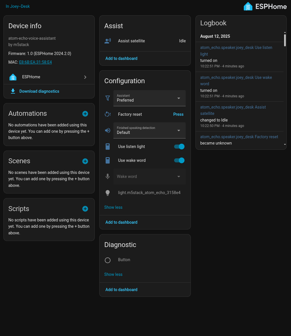 I added an atom echo via esphome but cannot use it in any automatons or scripts as an audio target.