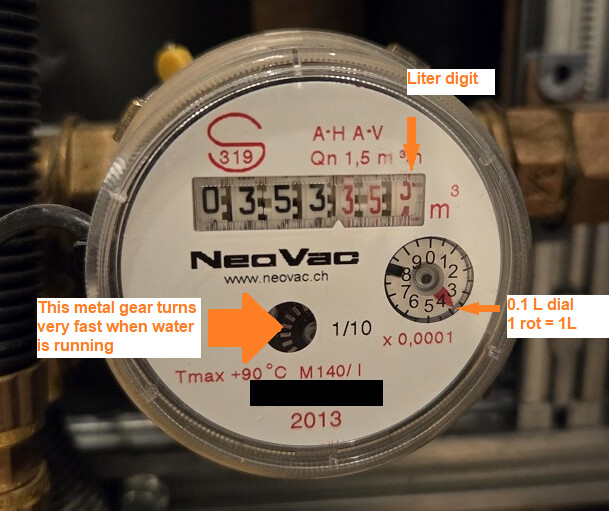But overall, I find this encouraging. It seems like when the water is running, a variation of the magnetic field outside the meter can definitely be detected, so it should be possible to use such a sensor to read the meter automatically. I also stumbled upon this other project, which looks quite promising. Even though it is designed for a different type of meter (I think nutating disc meters are also called positive displacement meters) than what NeoVac manufactures, the same general principles should apply: