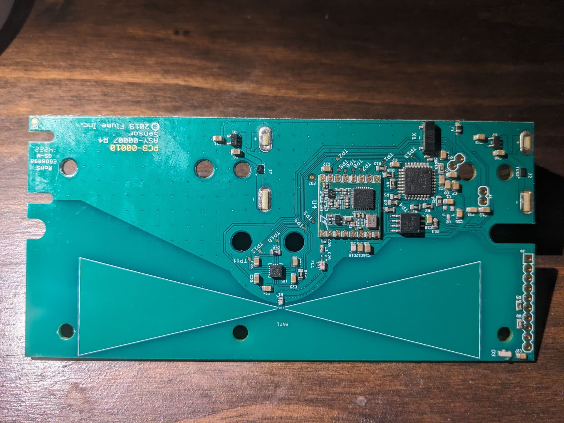 - In a device like the Flume, the sensing seems to be done by a hall-effect or a magnetoresistive sensor. But one key aspect is that they have a huge PCB antenna to overcome the water meter and device casings.