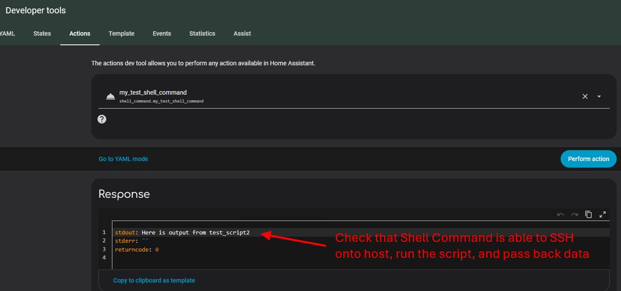 A Shell Command to provide an action that connects to the Home Assistant OS host over SSH and executes a script on the host (this is the script called