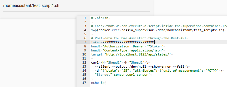 Initially I tried to just have a single script which is executed inside the Supervisor container (because this container is where I want to be sure the drive correctly appears, so it can be used for backups). However, when testing it, I was unable to use CURL to post data with the API over port 8123 from inside this Supervisor docker container. I assume it is because port 8123 is not mapped from the host to this container (because it’s not really needed). This is the reason why I ended up passing the drive stats back to the host using a second script, and then finally using the host to do the CURL post part.