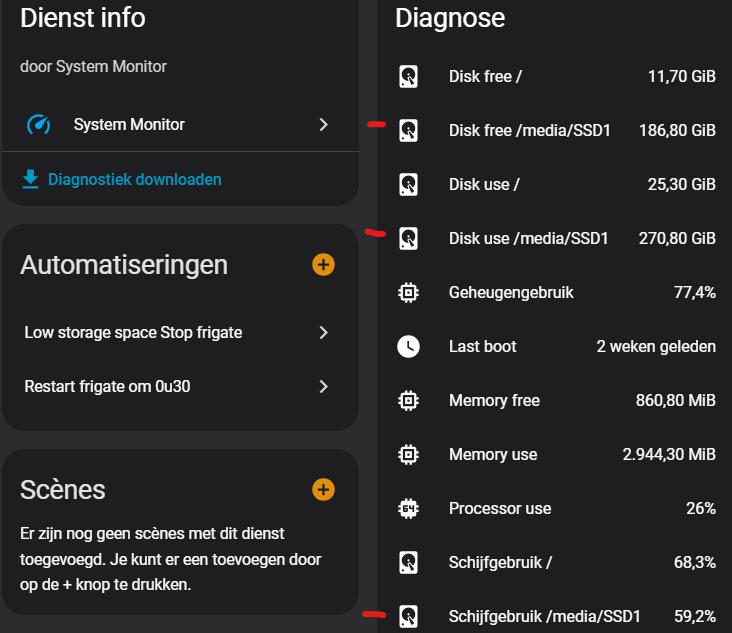 - There are no numerical sensors associated with this system monitoring from the Supervisor. For example, I’d like to notify my phone if the drive’s disk usage crosses a threshold, or perform other actions/automations, etc.