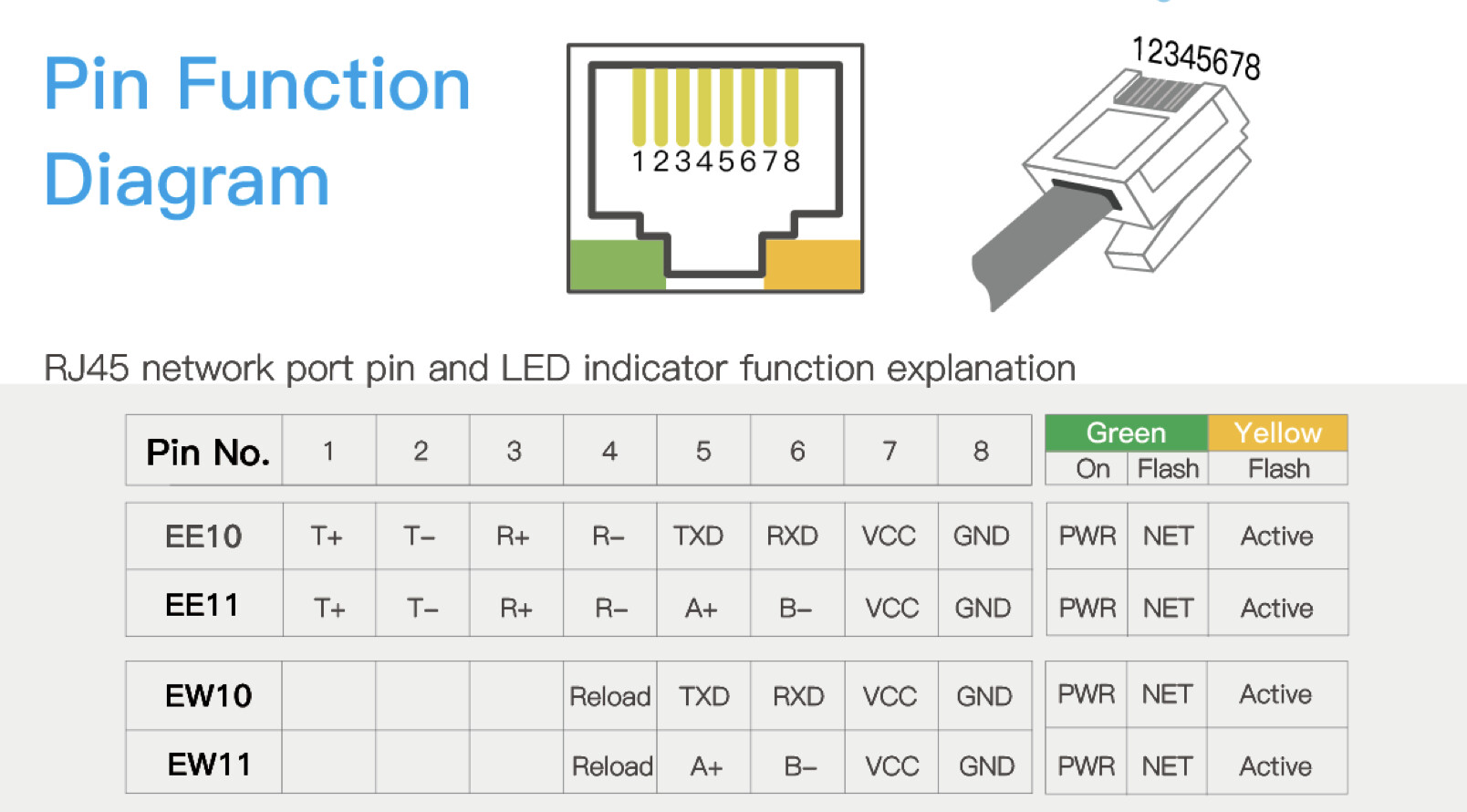 For the EW11A, the manual says to “connect reload pin to GND” for reload (<1.4s) and factory reset (>4s). But the EE11A, doesn’t seem to have a reload PIN: