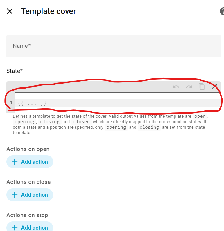 I set up smart relays and tilt sensors to automate my garage doors. From what I found online that I should make a template cover helper for each door (3 doors total). What do i put in the “State*” part (see below)?
