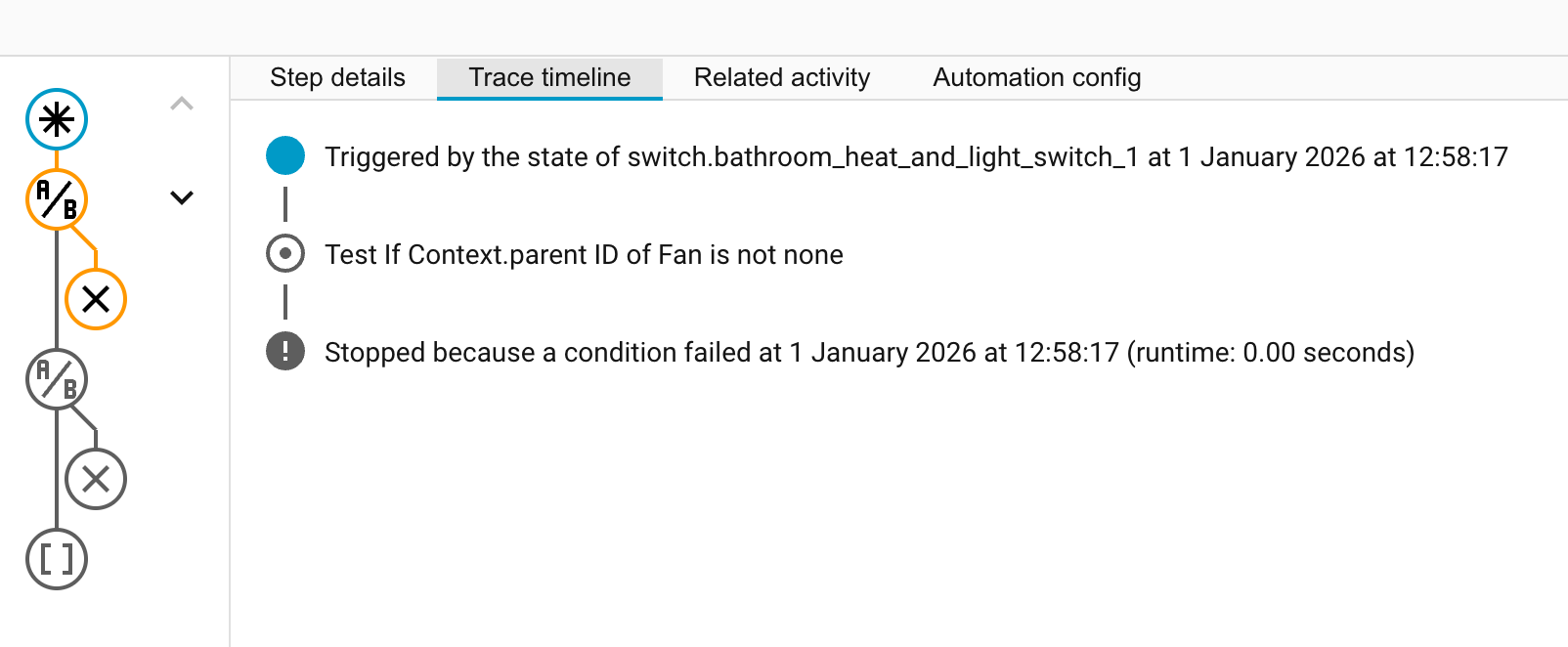 The automation fails at the first condition: