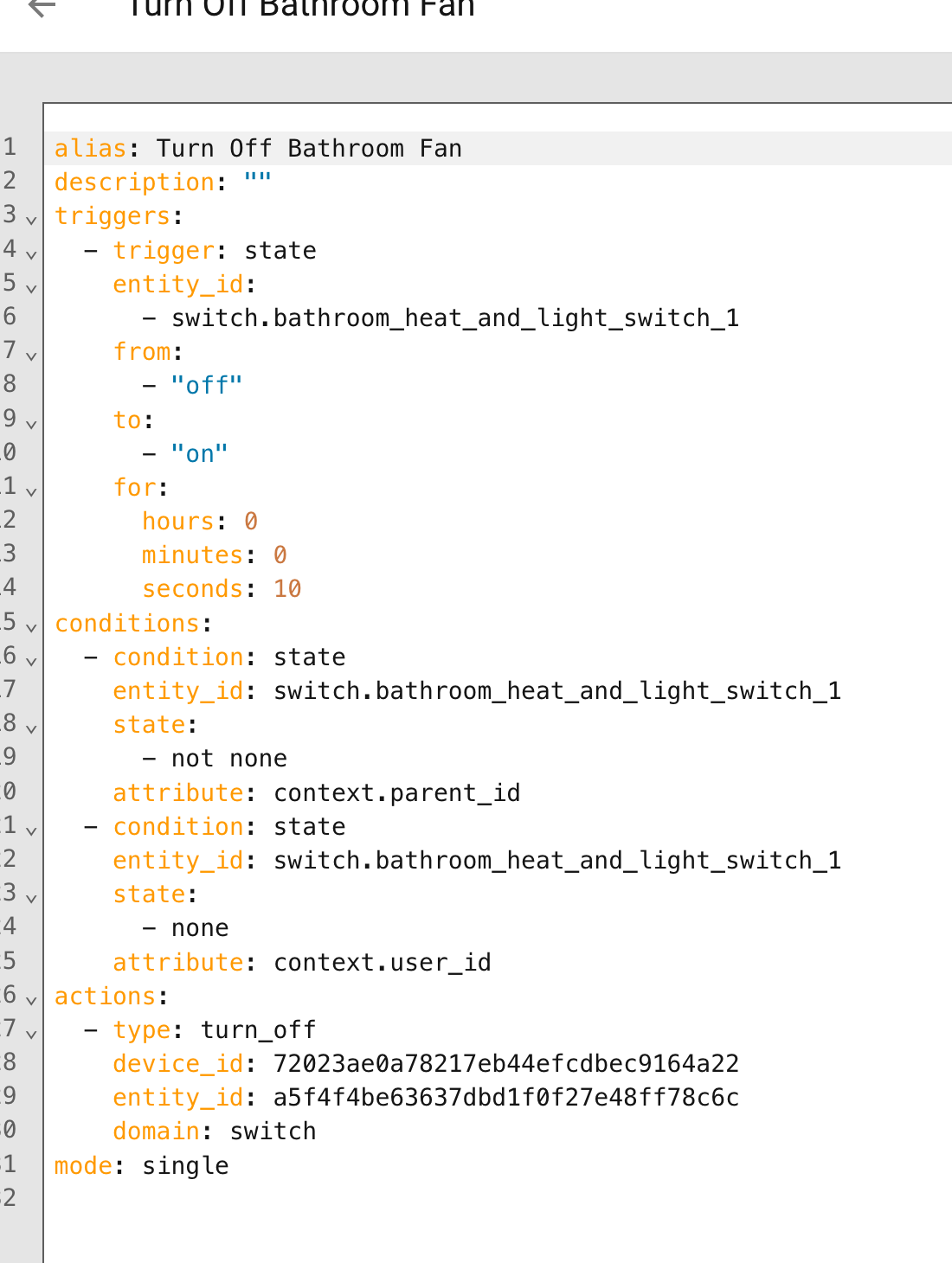 - the second automation (triggered when the fan is turned on) is not going so well.