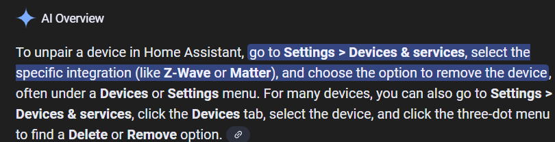 Good for you! I searched and only found threads about not being able to delete devices in HA. Evidently you are not away that you cannot delete a device from HA, which is what prompted my question. If you mean this answer, it does NOT work: