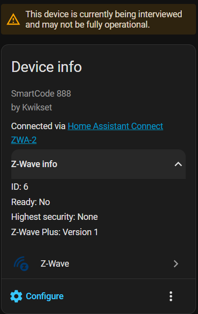 I did not explicitly include security, so it is not included. Wow, I just saw the “delete” option for the first time. I could not find it previously. A senior moment! Now from what I’ve read I need to pair it with the legacy security option in order to have to the ability to control the lock.
